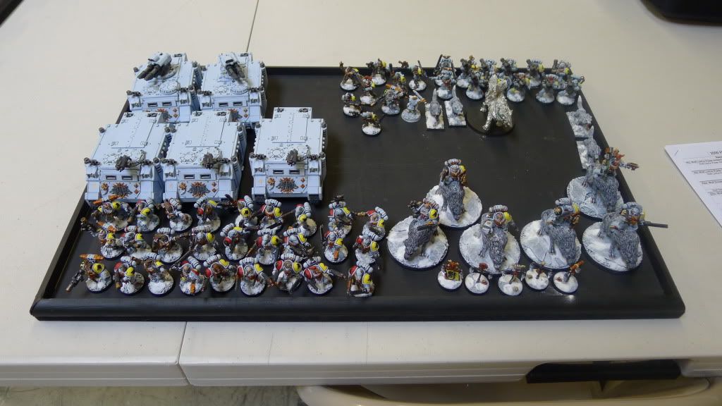 Last year was actually my first year to the Ard Boyz, and I brought my Space Wolves. Unfortunately, my first match was against arguably one of the most dominant armies at the time - mechguards. I didn't bring one of those highly competitive pure MSU armies and narrowly lost to IG. I went on to win my next 2 matches, but the damage was already done. I was out of the running. BTW, the winner at our location was Janthkin and his bugs, but he was lucky to have ducked my 3 rune priests/2 Jaws of the World Wolf list (and on drop pods).