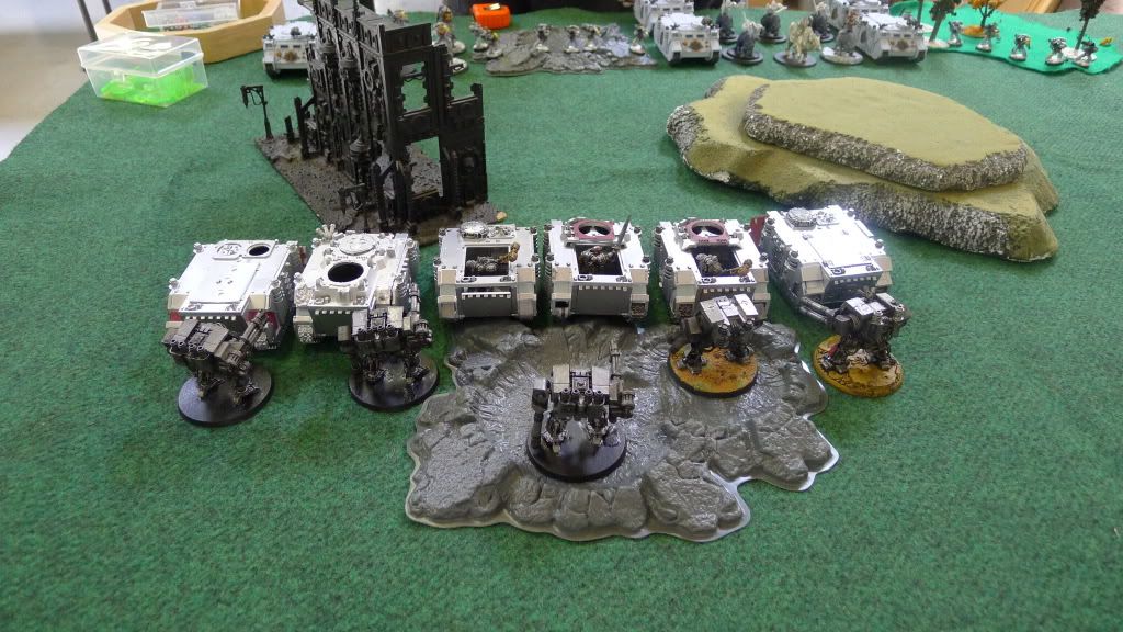 5x Purifiers - 2x Psycannons, 2x Halberds, 1x MC-Hammer, Rhino w/Dozers + Searchlights