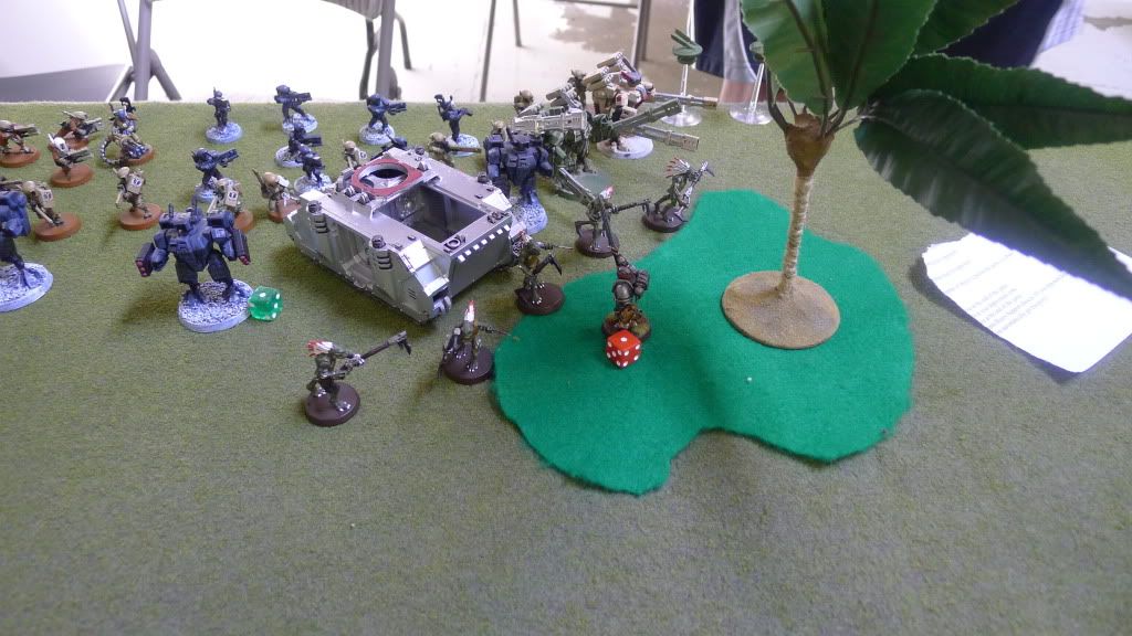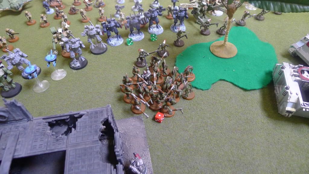 JY's Dreads have partially survived so far because the enemy also has 6 rhinos that they need to target also, against the Tau for example, as you said, more bodies would help, but then again, as JY said "as long as they don't fail morale and run away" and "Originally, he concentrated on my mobility. Take out those rhinos and then his infantry had targets to shoot at. After his broadsides and deathrains took them out, then he went after my dreads". If he had the Strike Squads, there would have been less rhinos to take out. Arguably, the 5 extra bodies could have helped. Helped as much as 2 extra psycannons, fearlessness and a rhino, I'm not so sure personally.
