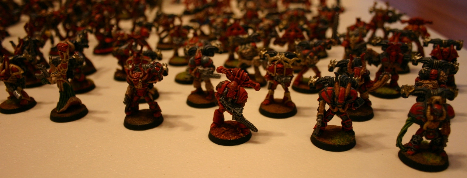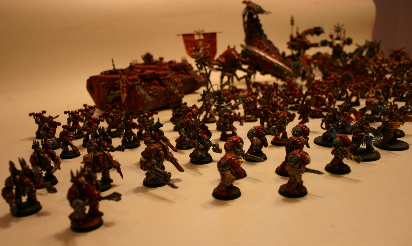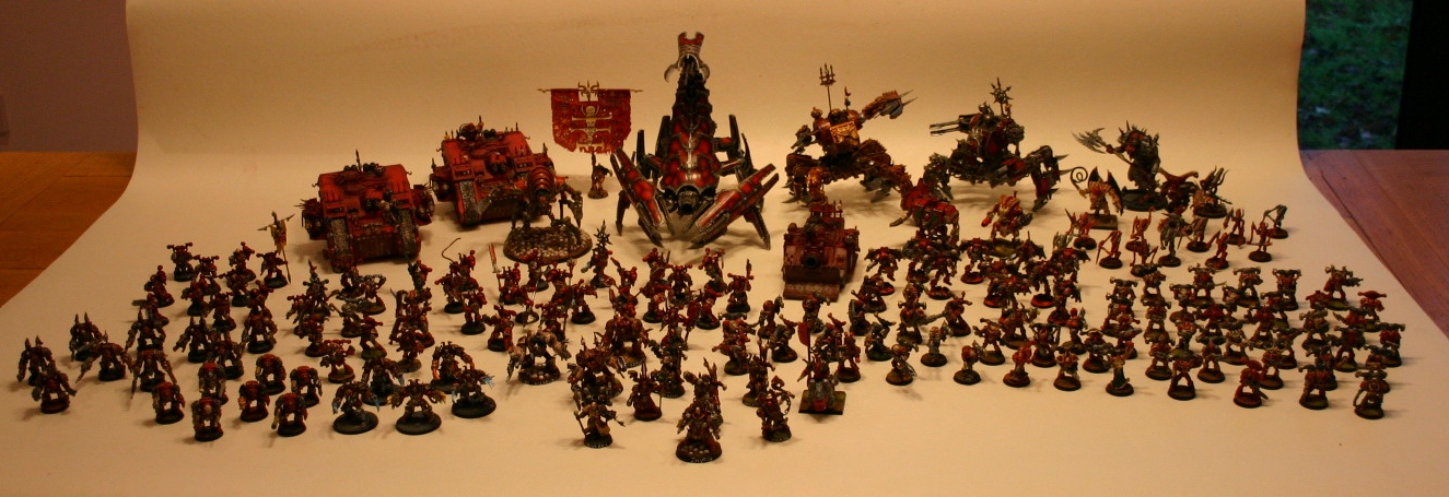 monkeyh wrote:Slugga - I like the idea - I had considered converting one of those dreadknights into a chaos contemptor dreadnought (don't like the forgeworld contemptor model much), but to be honest, with everything I've currently got boxed up and awaiting work: 1 Chaos warhound, 1 box of bloodcrushers, 1 box of bloodletters, 1 soul grinder, 3 rhinos, 1 box of Daemonettes, 1 baneblade to convert into a plague-reaper, 1 FW Nurgle sorcerer, 12 raptors to finish painting, 9 Nurgle terminators to finish painting, 1 Nurgle Daemon Mamon and herald to paint, 1 great unclean one to strip and repaint, 16 metal plague bearers to paint, 5 terminators with lightning claws to build, plus 2 old land raiders, 2 rhinos, 1 vindicator and 1 predator I got from a car boot sale to repaint/convert to Nurgle, 10 thousand sons, 1 fw Thousand sons dread, 1 blood slaughterer and a partidge in a pear tree - I don't realy fancy taking on any more projects just yet!  Sadly I buy stuff quicker than I can build and paint!