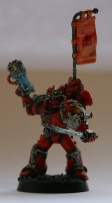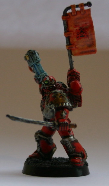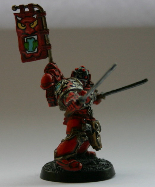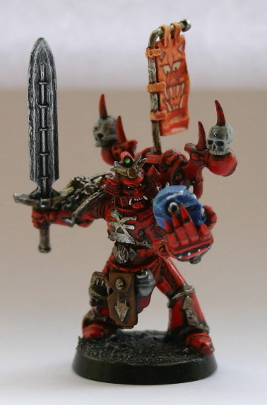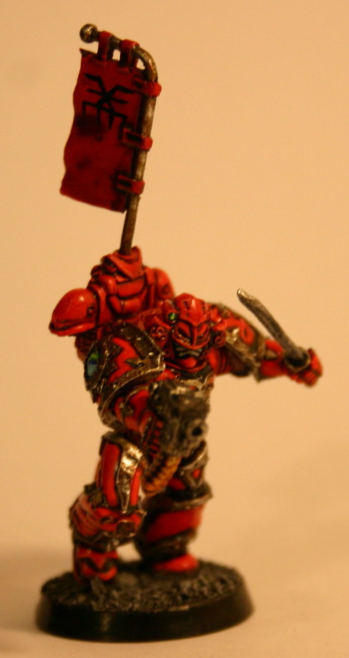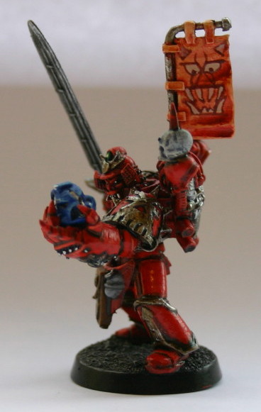 Haha! That pose is great. Also, I really like how the banner is both a face and a Khorne icon this time.