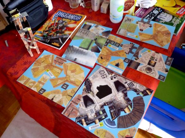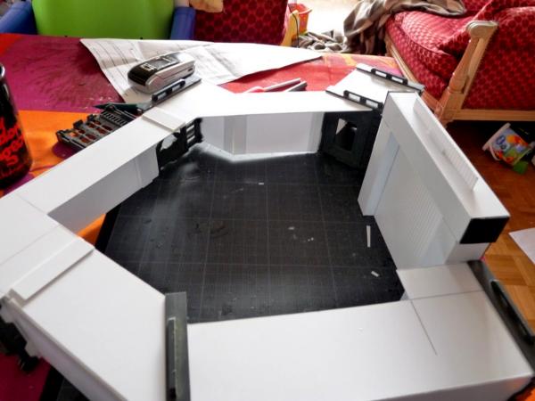 The main difficulty was to work without a proper visual support. I had measurements, general instructions and 5 pics (commercial pic included). Otherwise, it was an easy job, quickly done. Now that I have built the general shape of the fort, the funny job will start, orkifying the whole stuff.