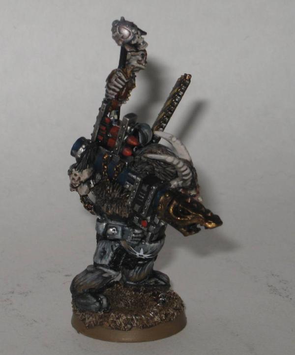 I kind of went a bit over the top on the Skullface roll and made him a bit more undeady, and raided an ork sprue for his chain sword arm. I spent far to long on his head and I dont know how it looks on film, still you may get a better idea when he is painted up!