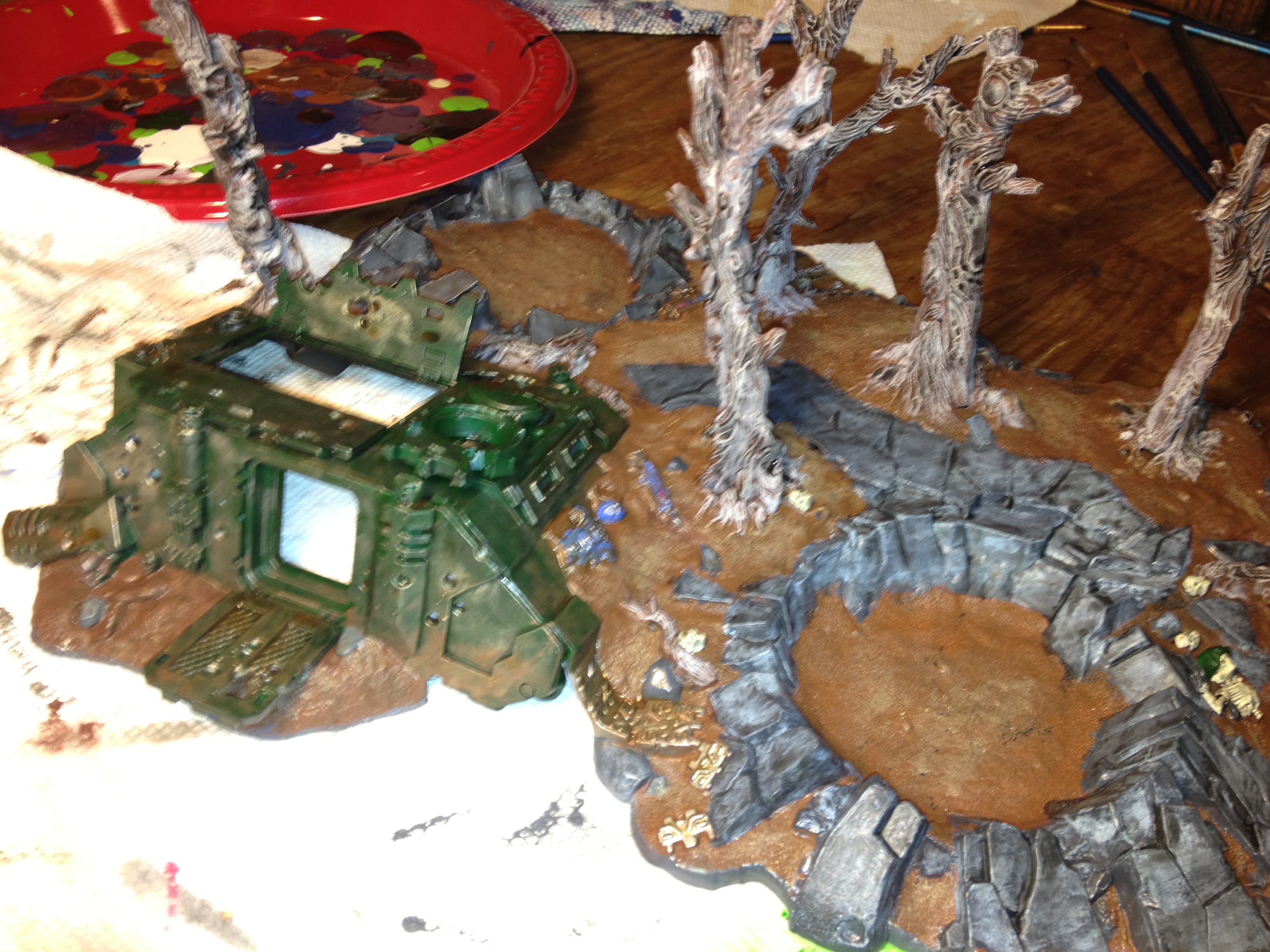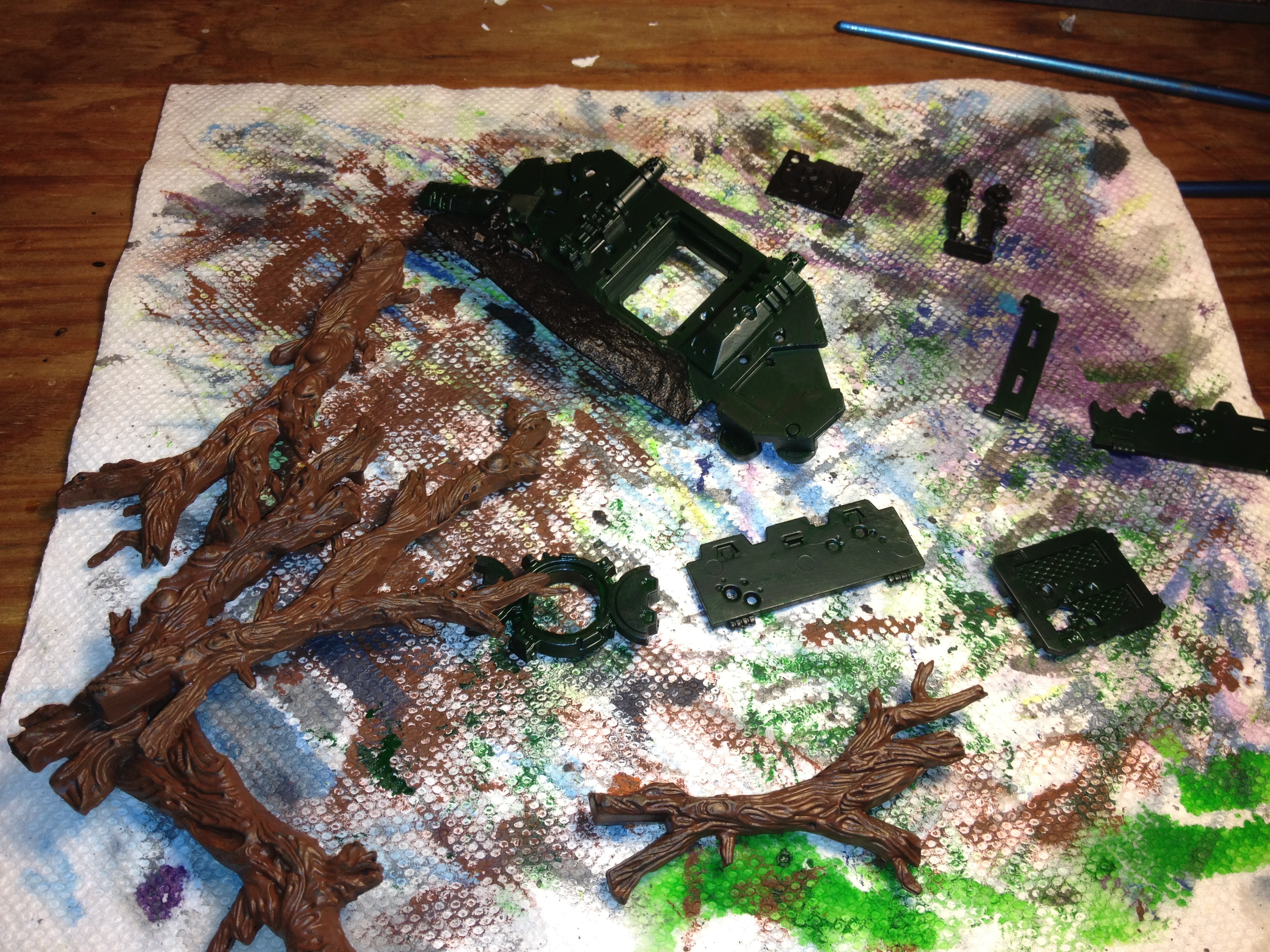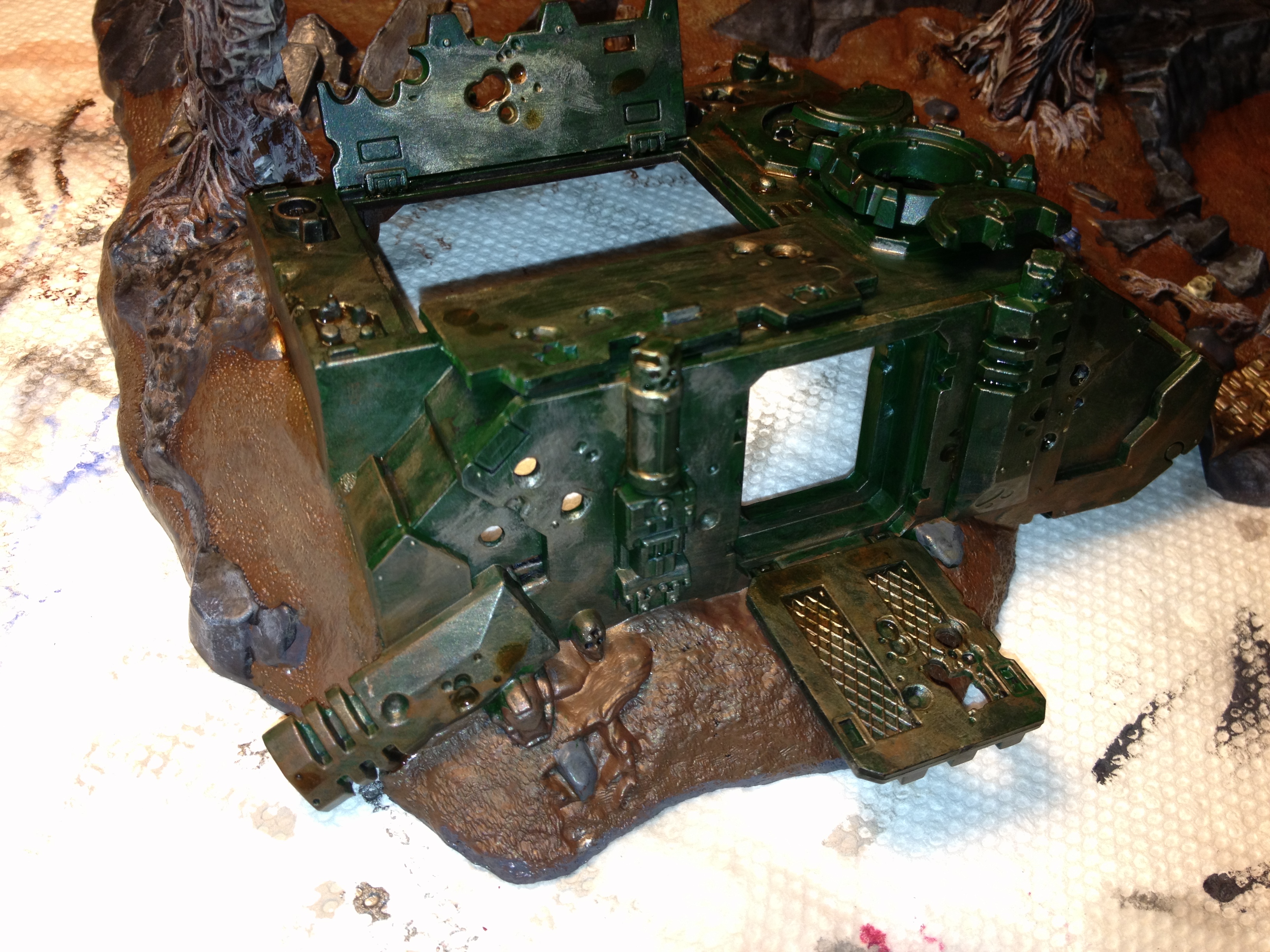 Vehicles - after basecoating use an extremly heavy layer of the wash to really darken the vehicles. I have not come up with a way I like to highlite that back out so I am just leaving it dark.