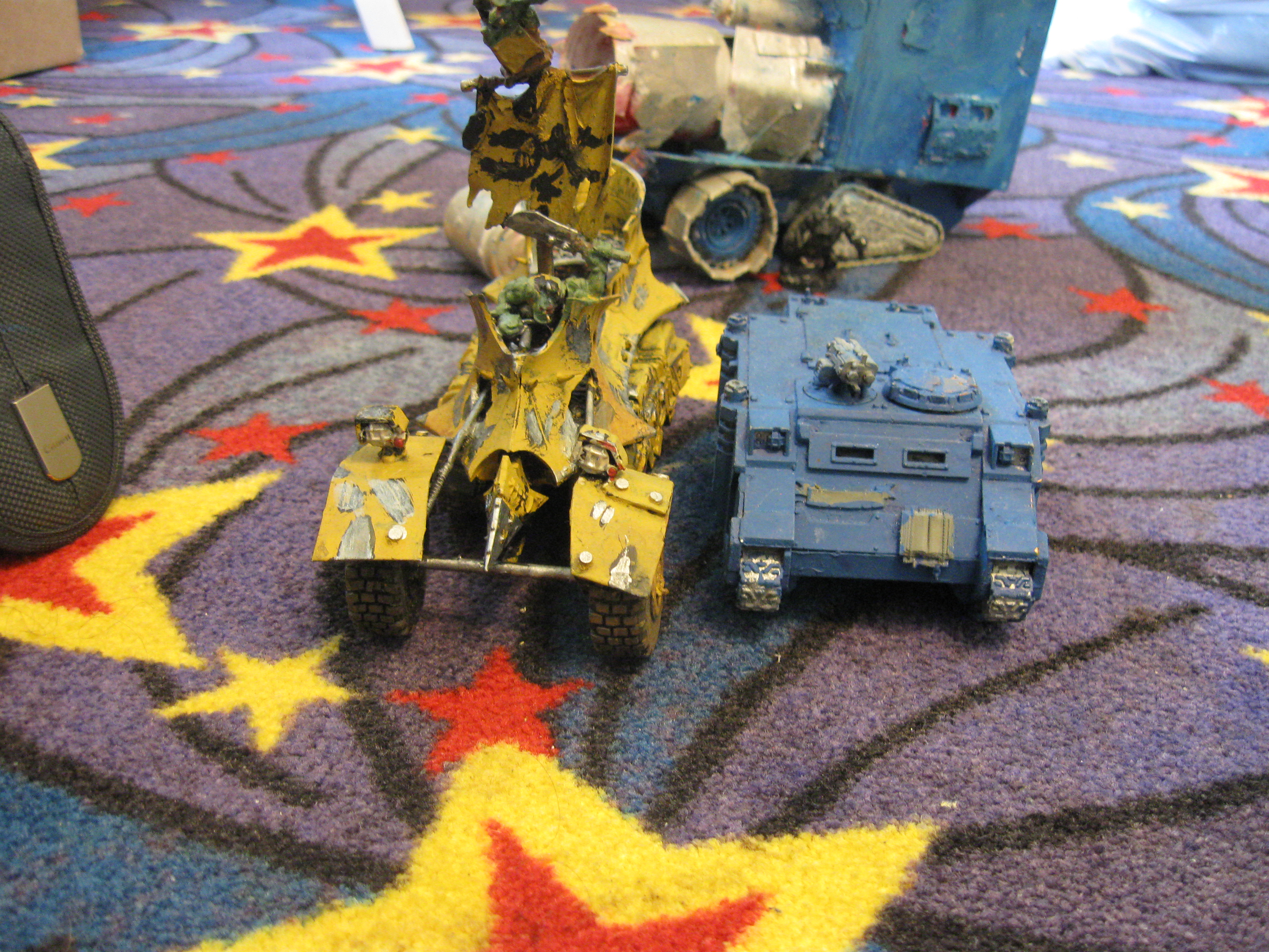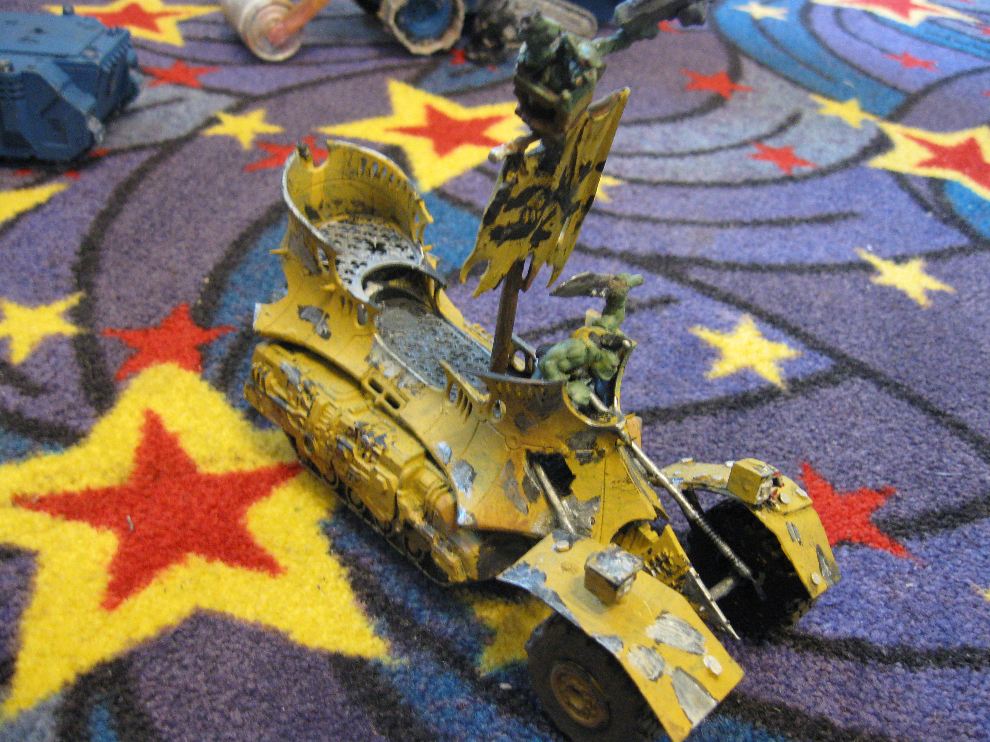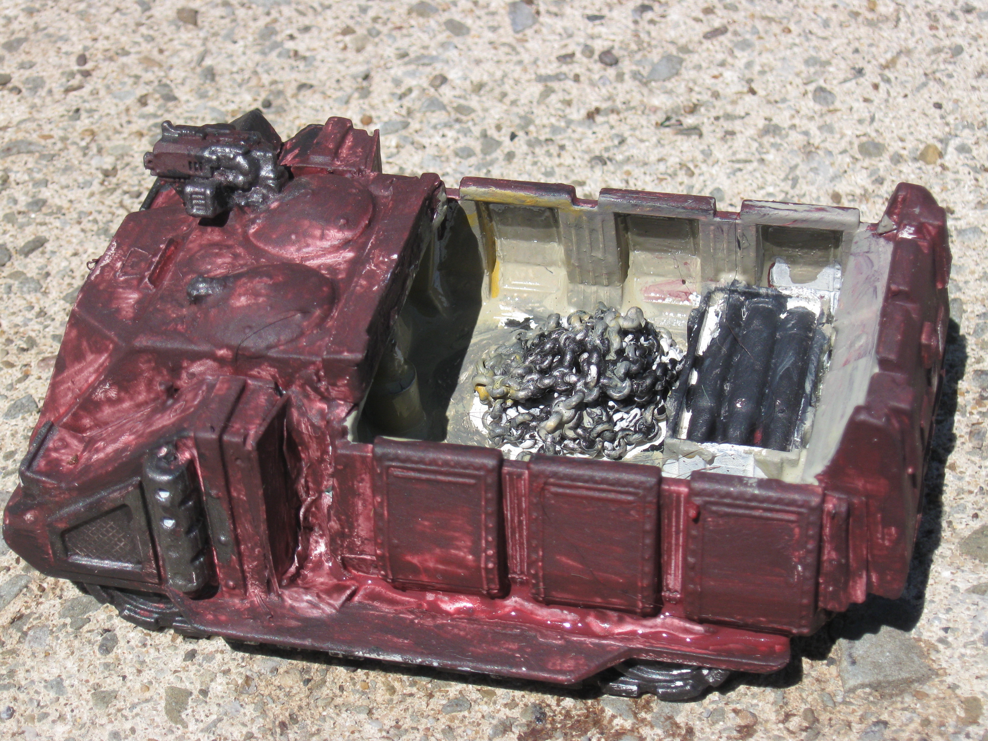 Thought it was a battlewagon, Thought it was a train, The machine spirit, in the end, won, It's a land raider again. I love rhymes! I hate not having super glue, though...
