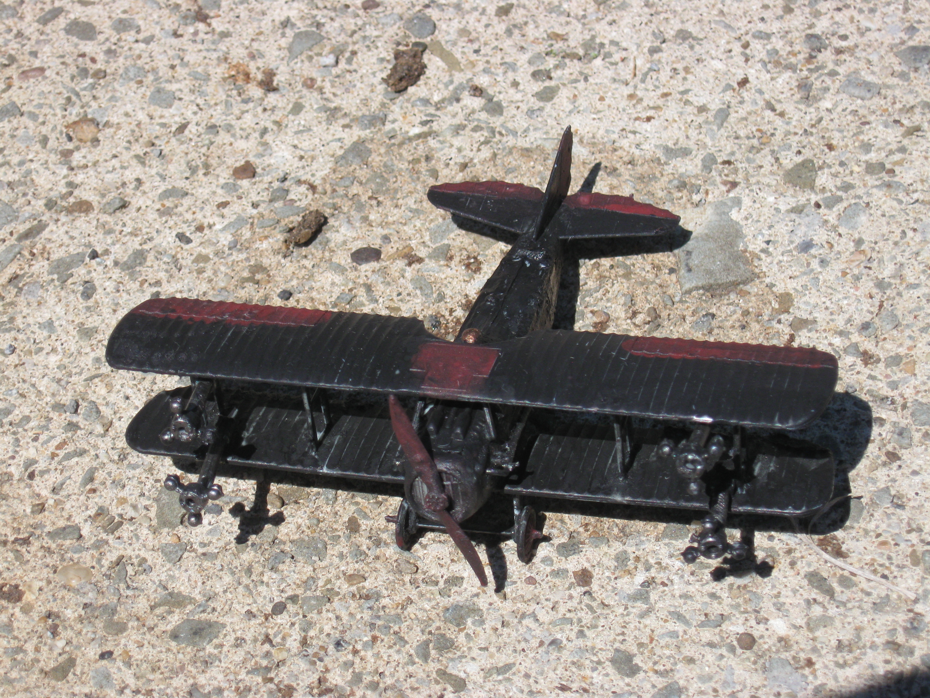 and the fighter plane has you back on track with cuteness... lovley piece right there... and no... i can´t tell what the wings are made of... best guess is metal but nothing further...