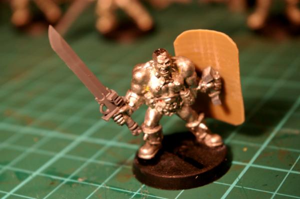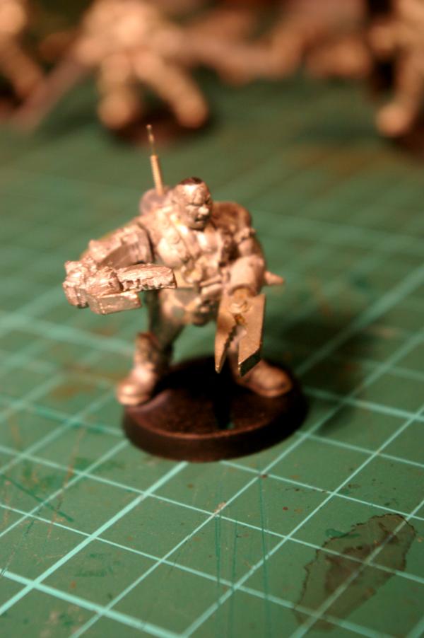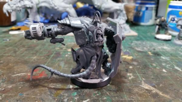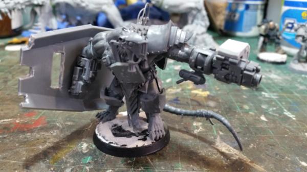 Im going to run them as Bullgryns. The idea being that towards the sump of a Hive city when mutations are abound and that thinks like giant rats exists, its not beyond the realms of thought that a huge Rat-based abhuman would develop. Anyway they have been found and put into service as demolition crews, riot control and general being big and beastly. Ive made two up with slan shields and grenade launchers and the other (the leader) up with a brute shield and power maul (massive rock crushing drill)
