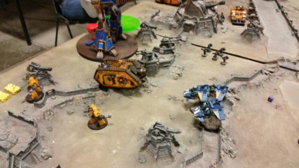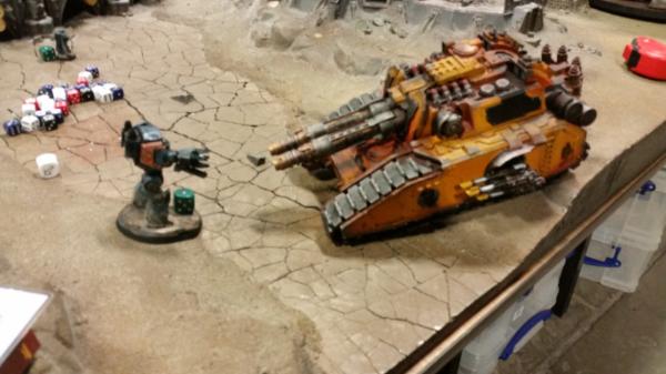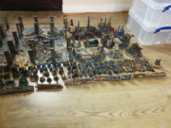 A massive amount of points in this one pic! (note the breacher squad valiantly trying to stick melta bombs to the titan's legs before it stomps up and down on them!)