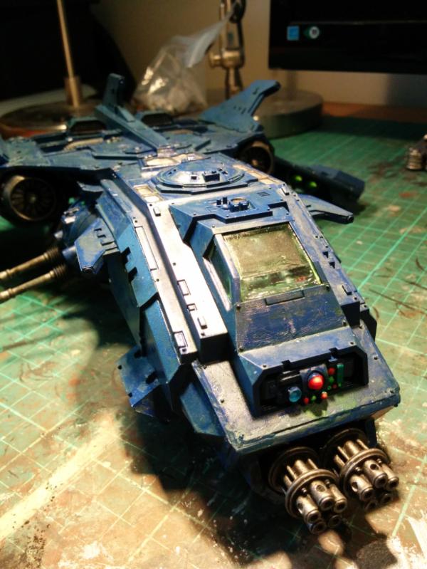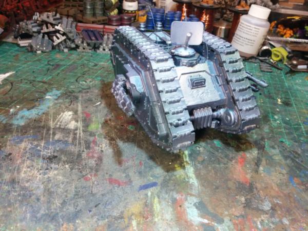 Ive been busy working on my other WFB project recently so havent had much to do with 40/30k, but in the last couple of days i have managed to get a little bit of progress on my Land raider proteus with explorator web. I wasnt happy with how thick the paint layers were from its original paint job (it was second hand from ebay) covered with primer and then re-base coated. It was starting to obscure detail.