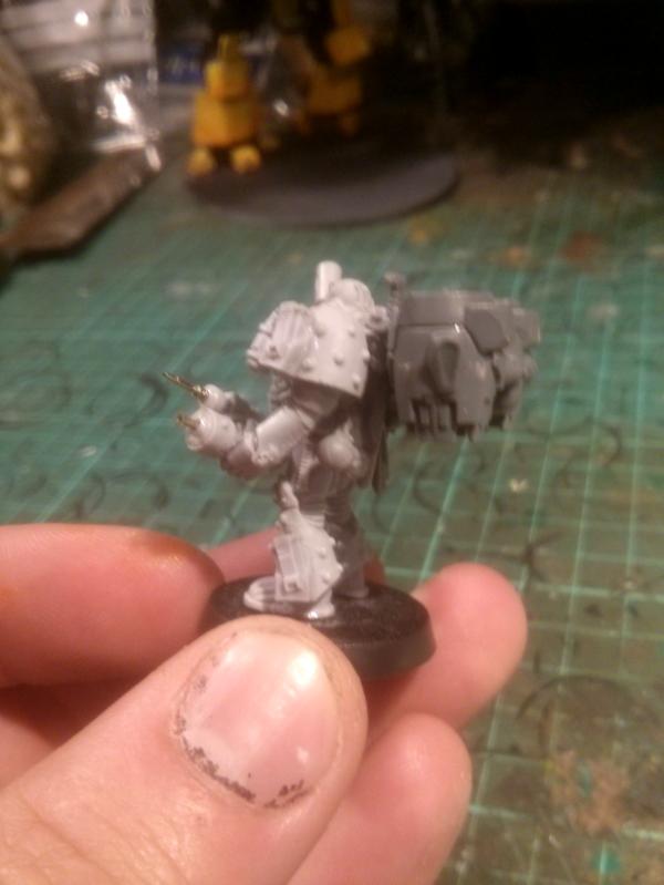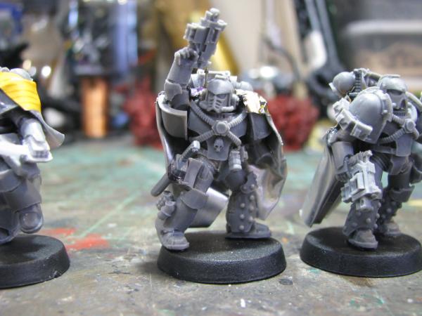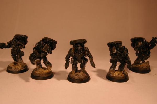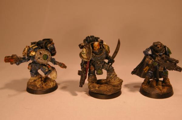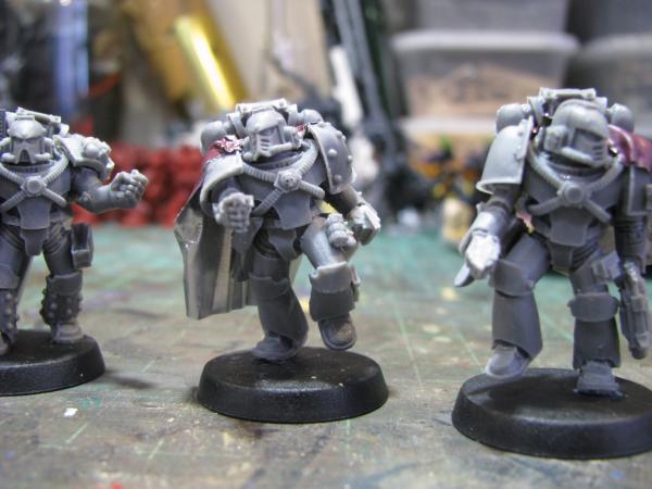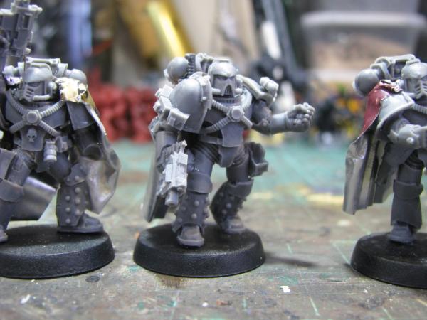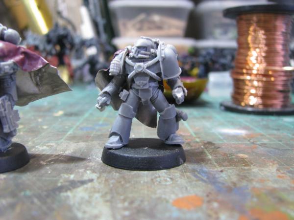 Ive tried to make each unique and look like they have been on the move a lot, so lots of extra pouches and equipment on each. The cloaks are just for show and dont represent any wargear in game, but im going to paint them up in camo pattern of some type or another. Ive also tried to keep them completely wysiwig. Each model has a bolt pistol, power dagger, bolter(eventually) and grenades.