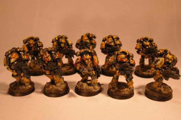 Ive gone for volkite chargers as the special weapon options due to having some around rather than any other particular reason. I thought about giving them graviton guns, but i want these to act as an assault unit and having heavy weapons in the squad screws that option.