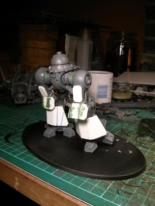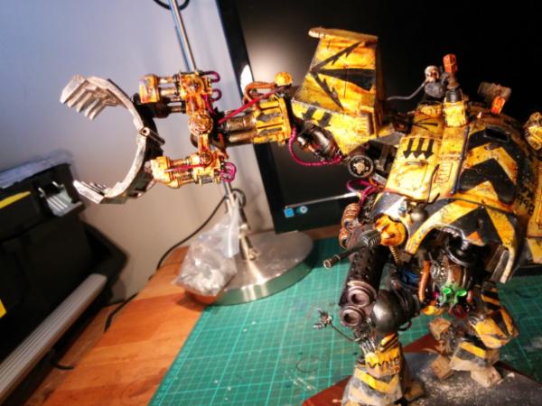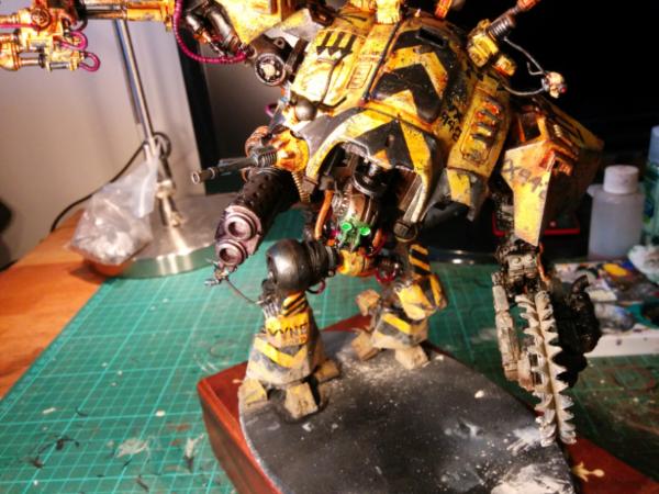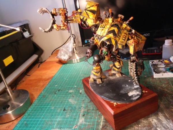 I then set about posing the contemptor on top of it to show it ripping the sarcophagus case open: