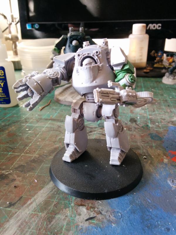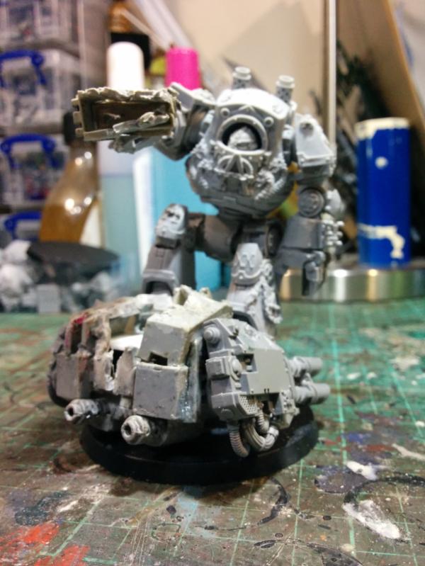 I started by putting together a base ornament for one of my new AL contemptors. I found enough bits of a old dread(s) lying about to make a mashed looking example:
