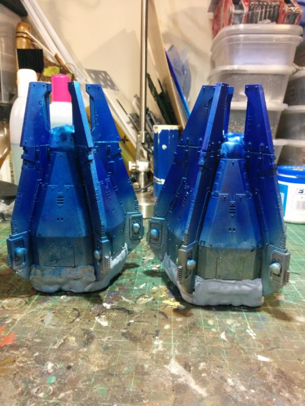 From my own parents this christmas i received an airbrush (my first ever) - An Iwata Neo. So i have set about painting the three drop pods with this. Im using more of the FW paint scheme for these, which i do like, but have never been able to replicate without an airbrush before.: