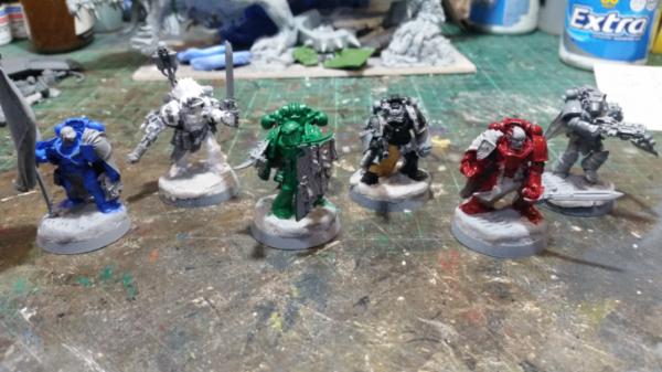 The idea behind the colour schemes is that each member is a chosen infiltrator and has returned to the man force without having time to repaint/change armour. They will be pretty beaten up looking by the end.