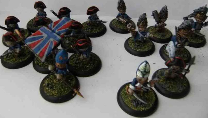 Next up is to do the blue coats, white stripes and brass buttons (but for the eyes dark silver I think!)