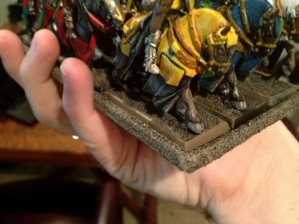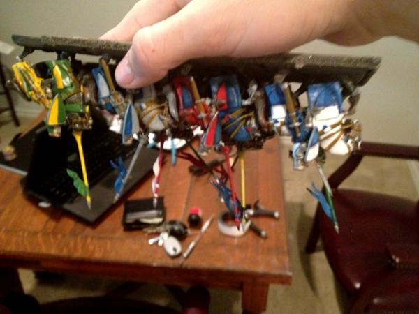 The whole army is resting on magnets so that I can just lift the entire unit out of their case and place it directly on the table. I made the movement trays out of a roofing shingle + sprue around the edges.