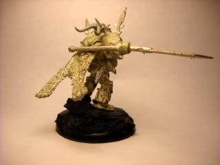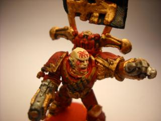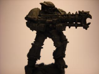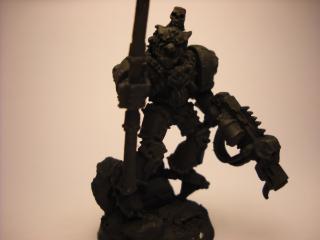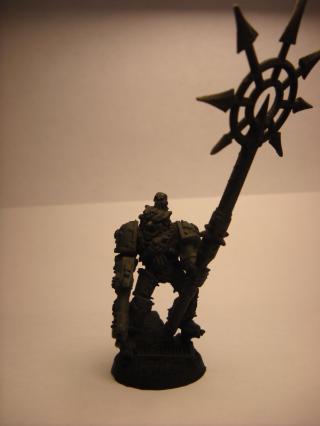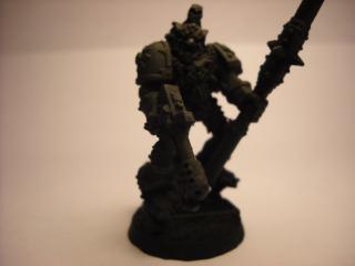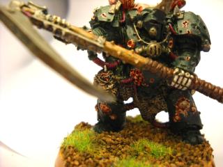 Conversion of Space wolf Logan Grimnar into Chaos Terminator Lord. His left arm is still off im waiting to get a arm to put a Twin Linked Bolter on him. the spear is a Daemon weapon of course. =D