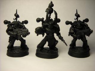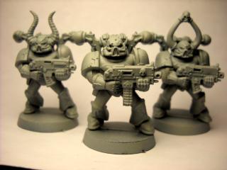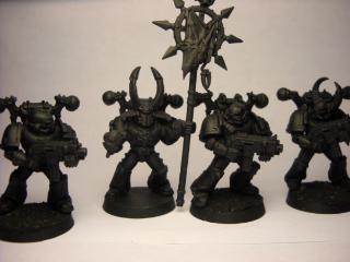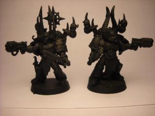 to go along with my fluff they will be painted necron abyss and have the chaos star painted onto their armor as 'elite' new converts with just scattered chaos bits on their loyalist armor. so if they dont look chaos maybe they will when reaching completion.
