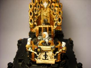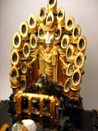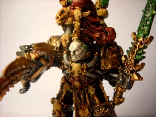 Try to find some space marine or eldar heads to stick on spikes all over his armor. Really drive home the point that this dude has killed millions, and is SERIOUSLY not to be messed with