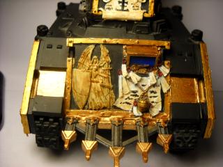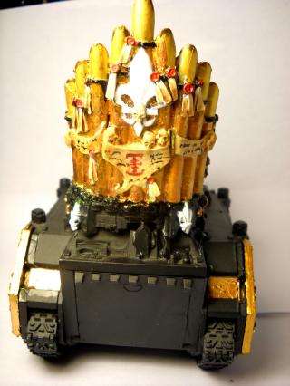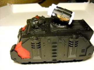 i have painted a Exorcist tank and am now trying to fix a mistake i made on the freehand i did on it. in the mean time i realized my lack of money and tanks.. sooo.. i Swiss Army knifed one. This one acts as a Exorcist and Rhino for my SOB and as a basic Rhino for my CSM.