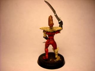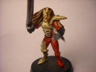 Okay well today i got my first paints and paint brushes! after spending a few hours at my local shop chatting it up with other players and watching a game i was so hyped up i painted my very first miniature! my hands are not the steadiest but i tried to make it look right. i used the above color scheme idea but substituted the purple for red.