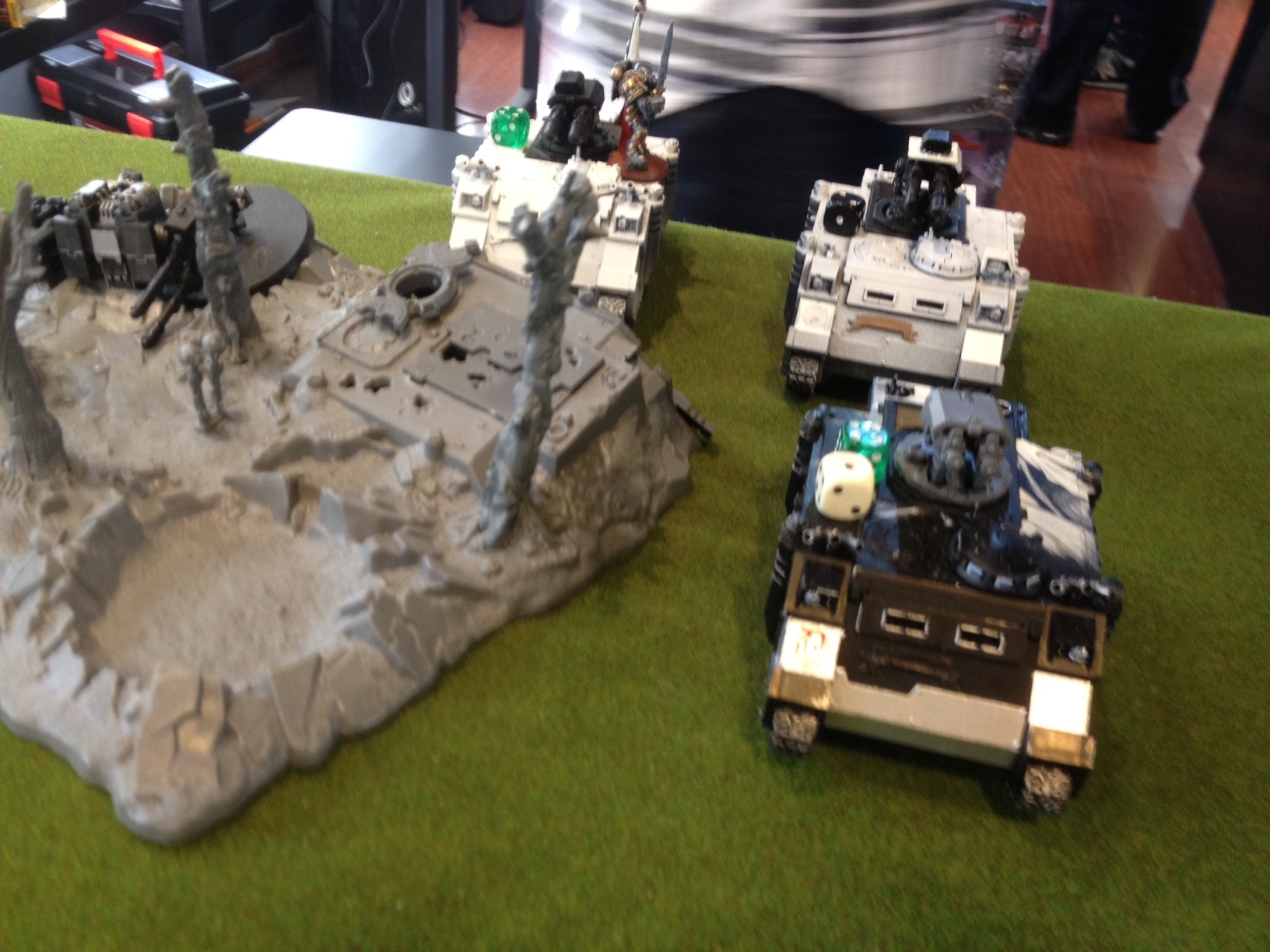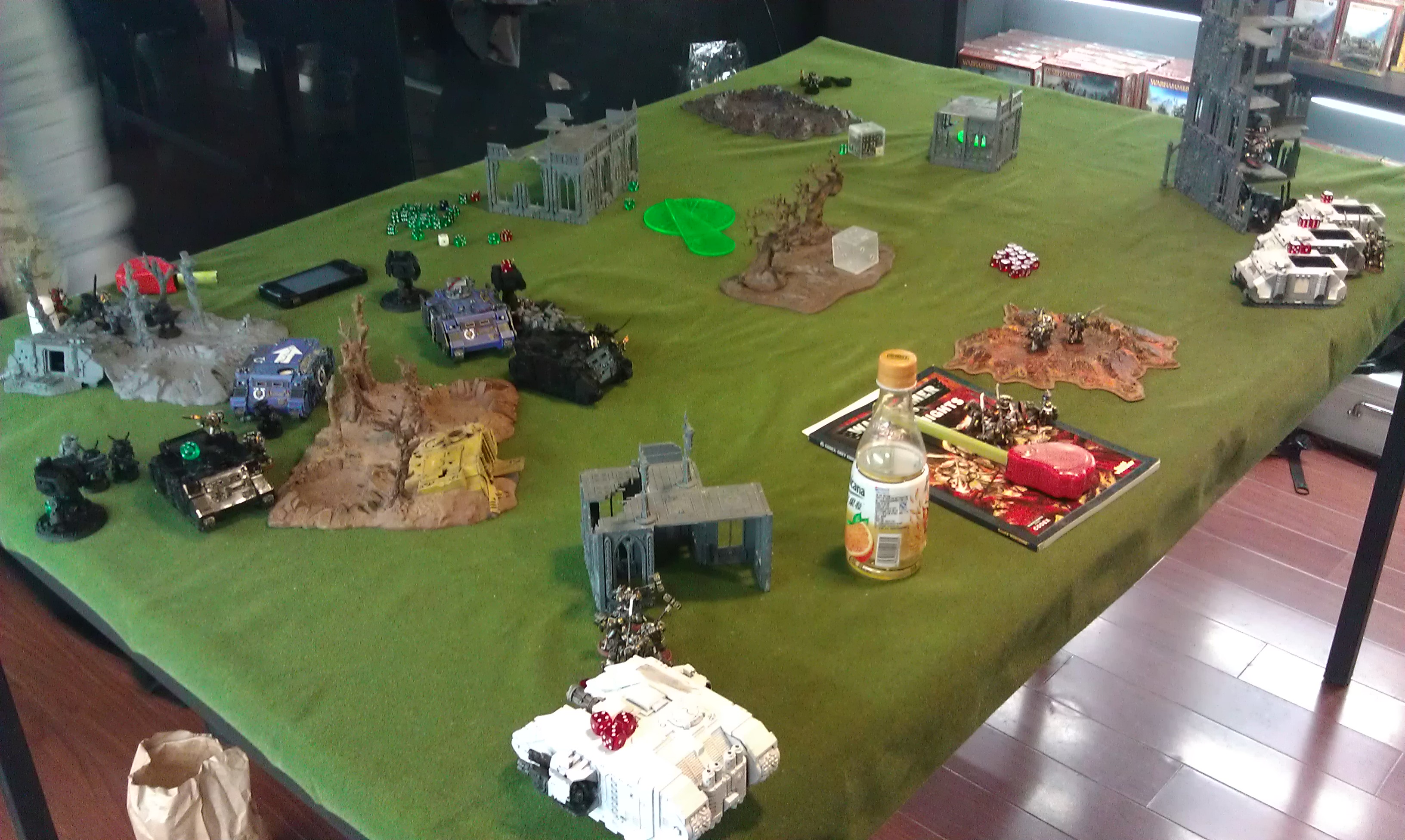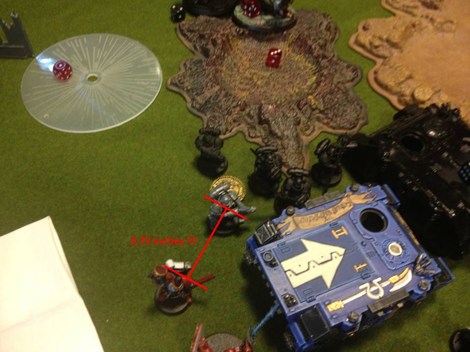 By the end of the match she held 2 objectives to my 1... I was actually about 1/8 of an inch away from one of her objectives with an immobilized rhino...if it was just a bit closer it would have been a draw