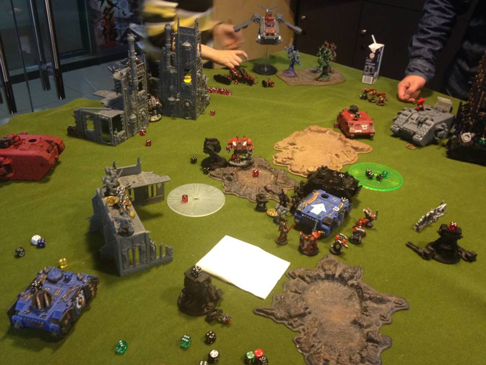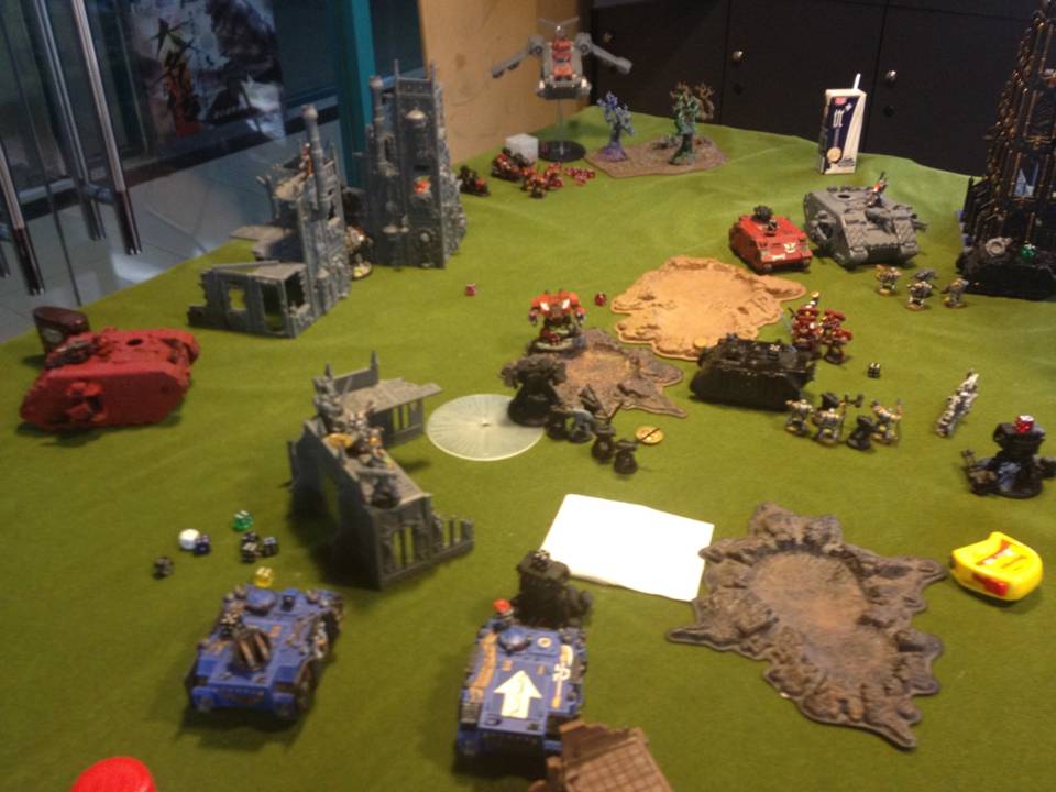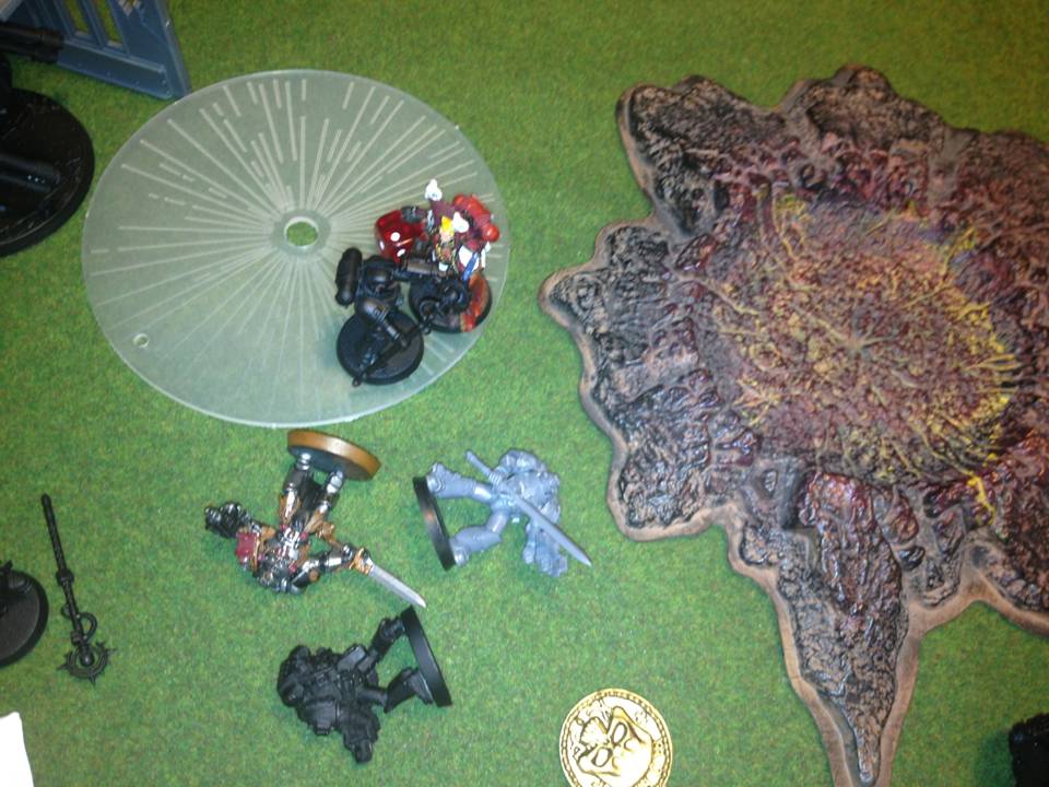 The other game going on was BA vs a lot of Orks. When looking at the table it was obvious the BA player had thrown a load of points into expensive characters and upgrades...perhaps 20 models on the table total. We imagined the Ork player was going to just stomp all over him. When they called it it was the BA player who took the victory. All his Ork mobs had no PKs.10 Nob Bikers, no PKs. It was crazy.