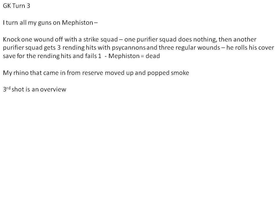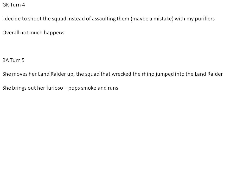 and yes Luke, 2 landraiders are tough for me to deal with. especially with Mephiston and a furiouso running around...and a storm raven. She has a lot of very goo dthings in fact...damn.
