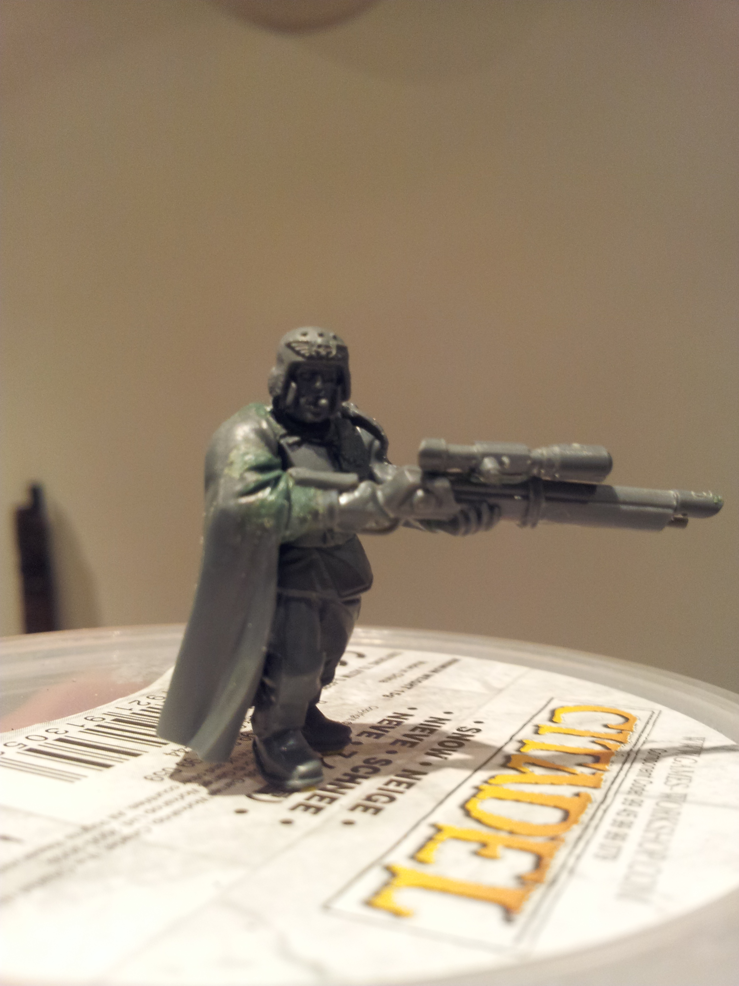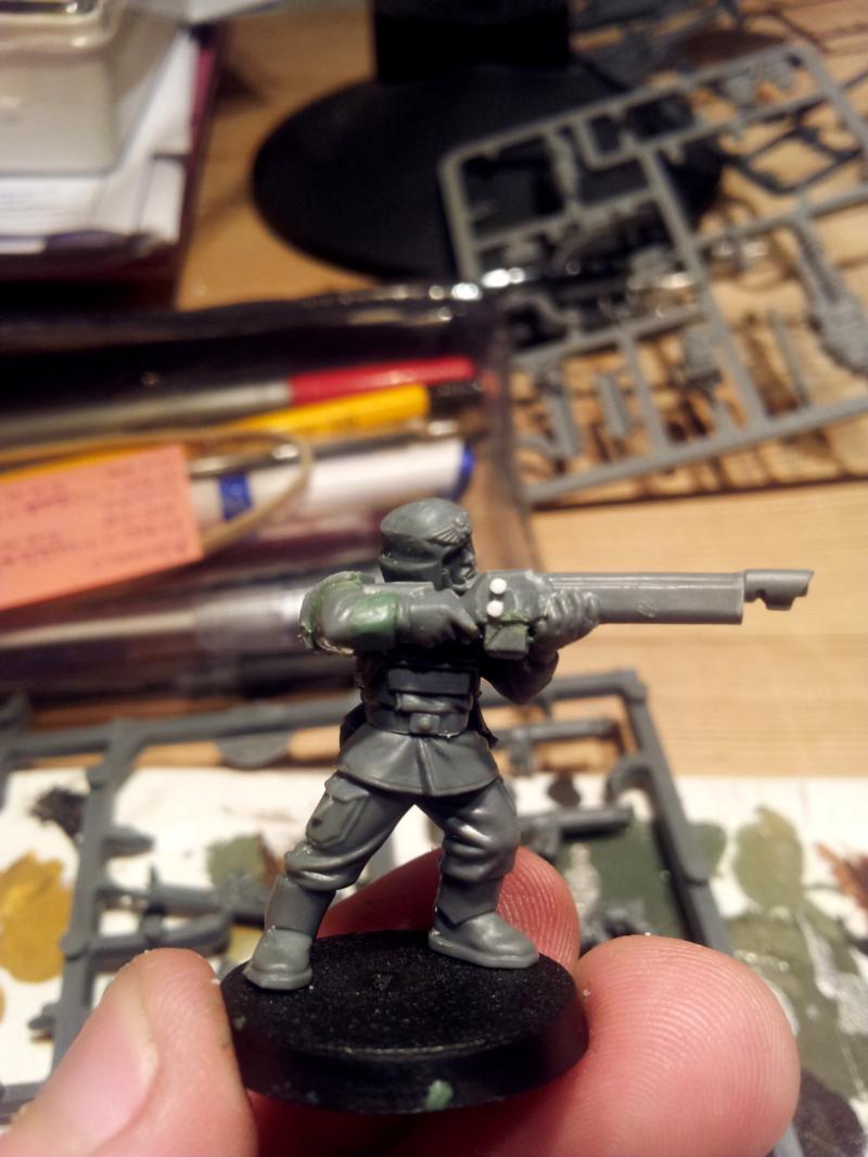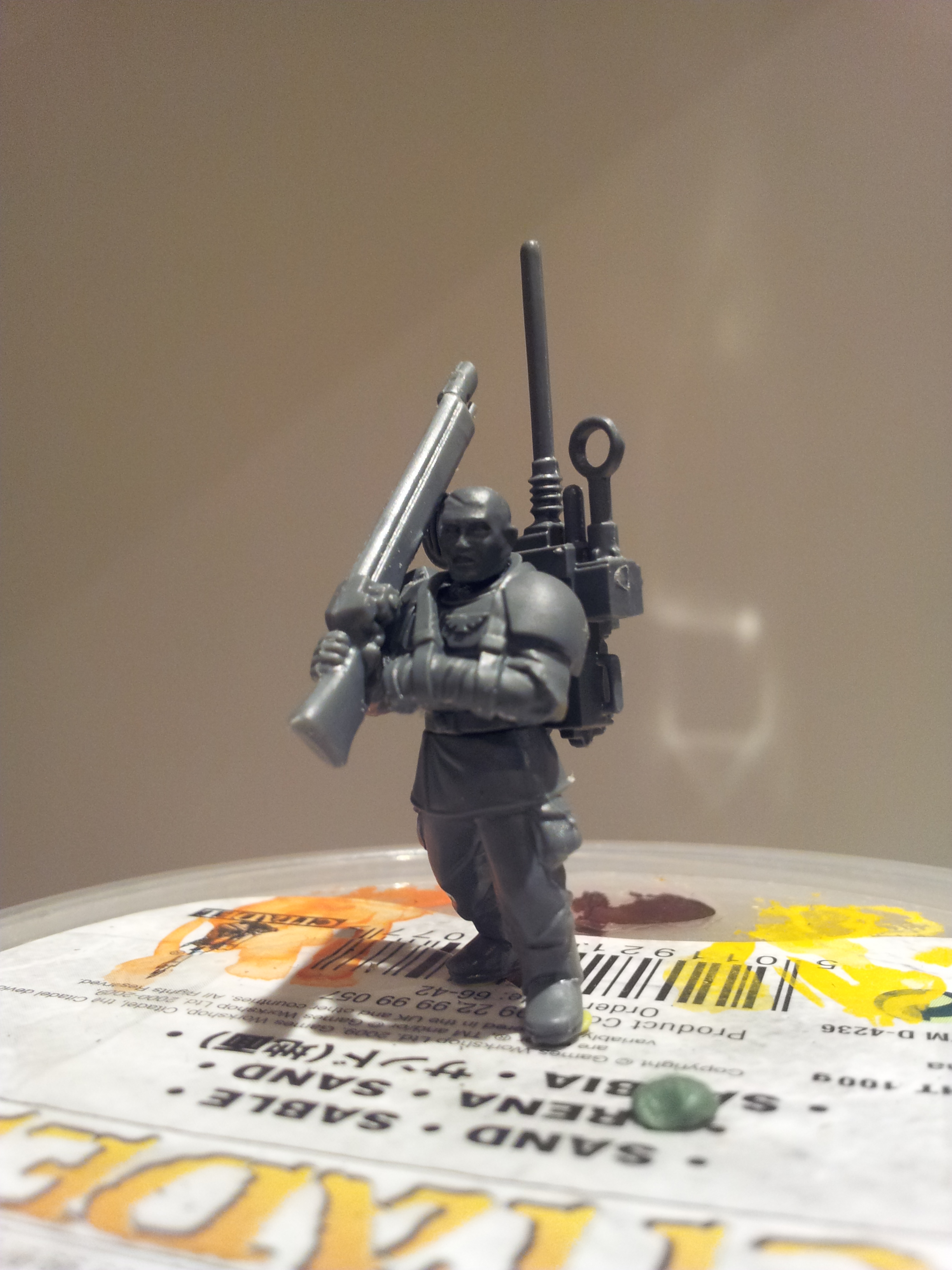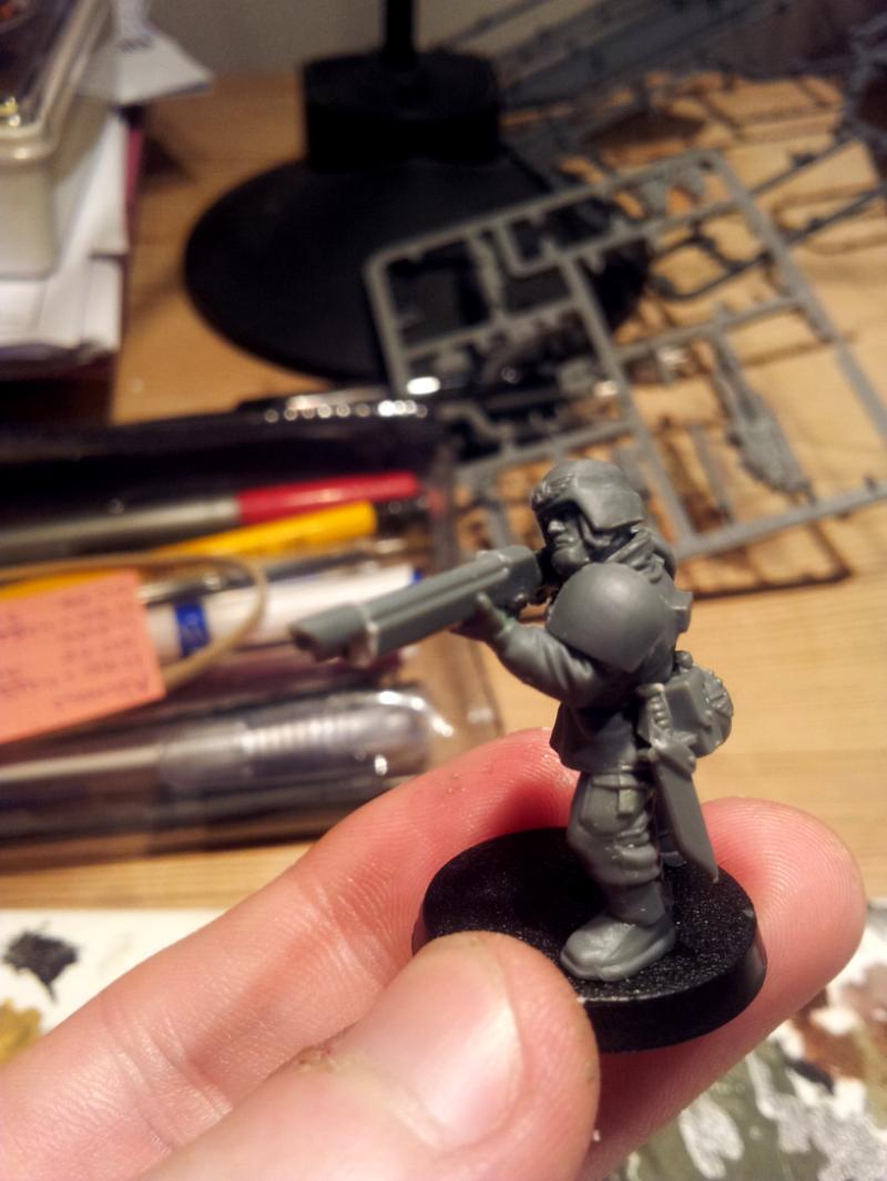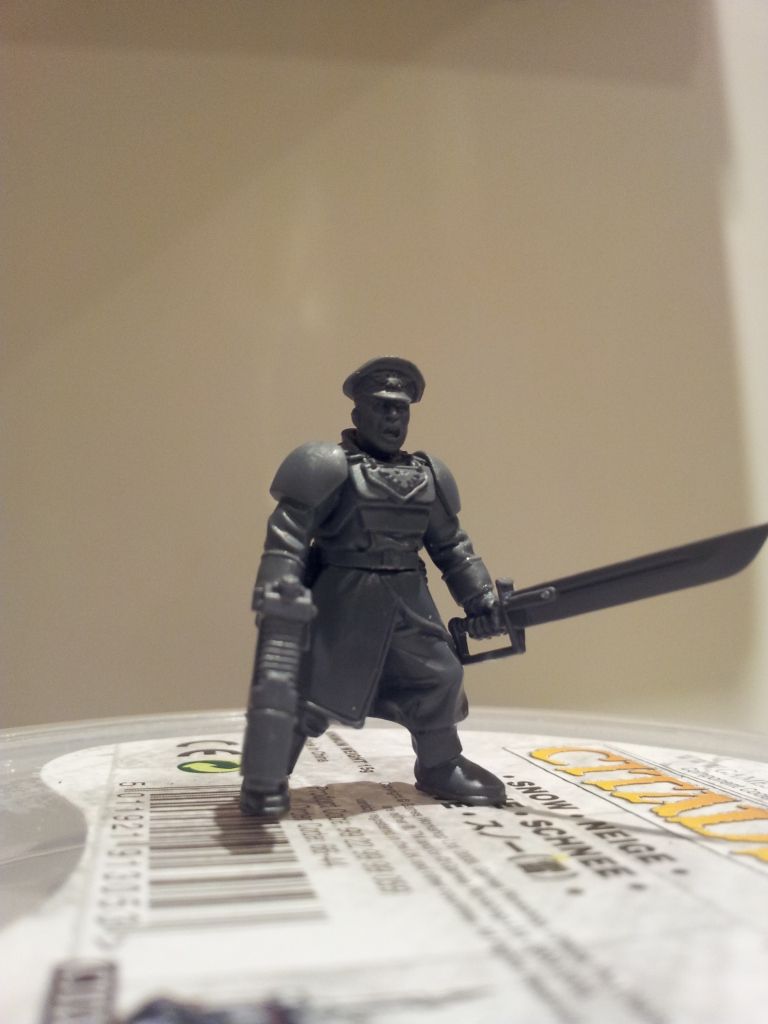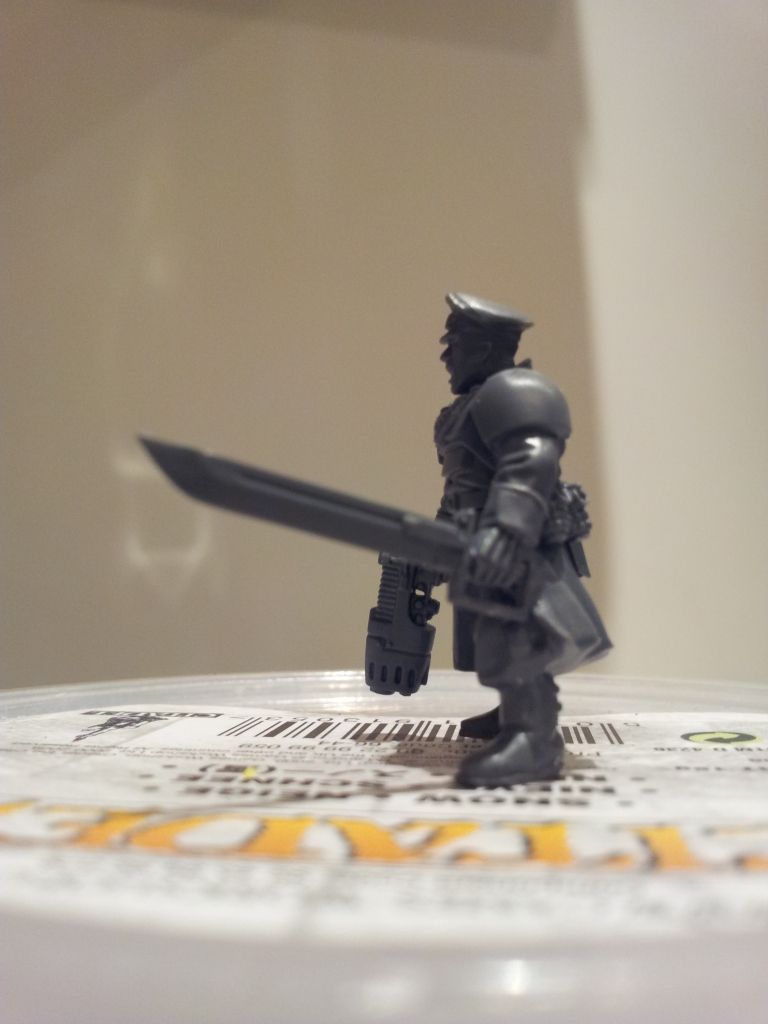 So I was thinking about things this evening, picked up my knife and plastic Cadians and came up with this dude- the first of my Veterans, huzzah! (Apologies for the wanky pictures, but my phone is all I had at the time!).
