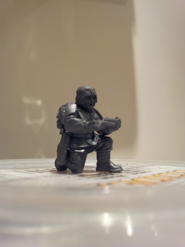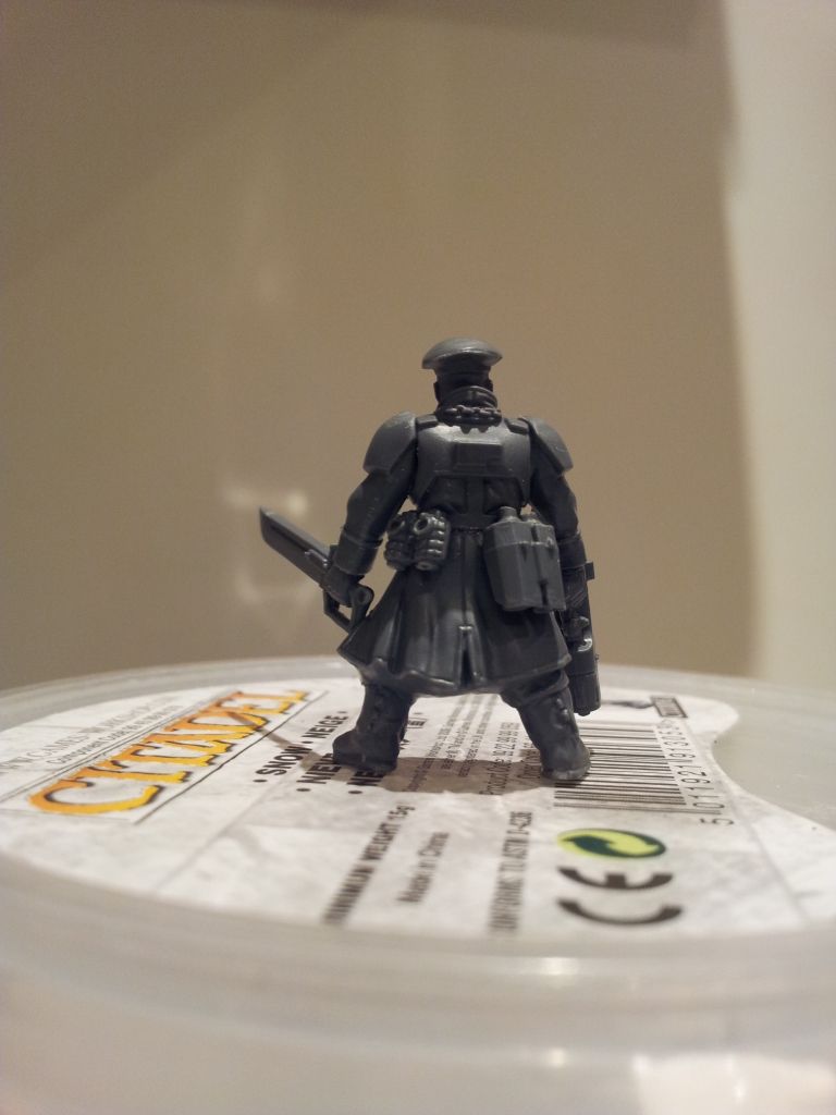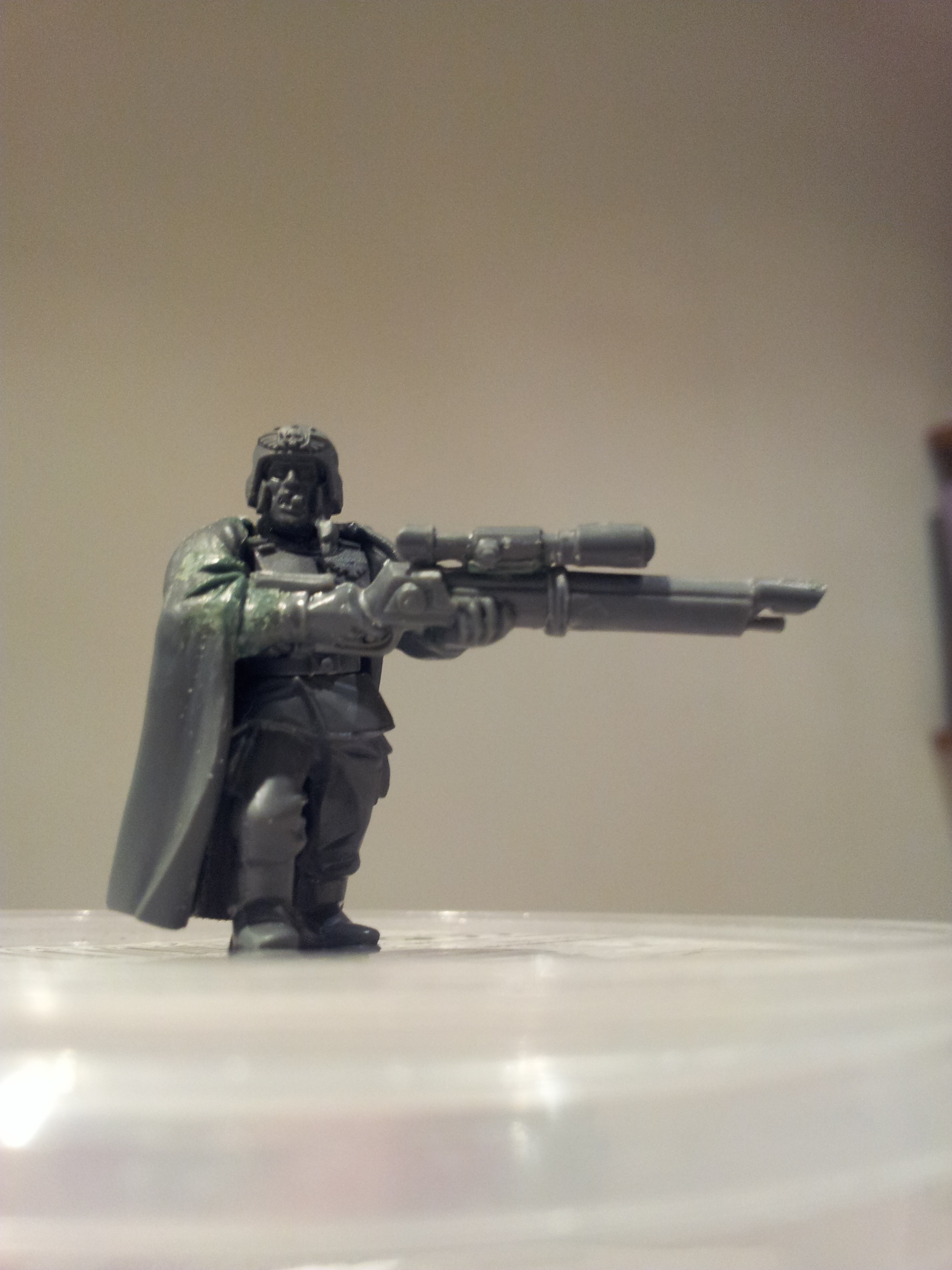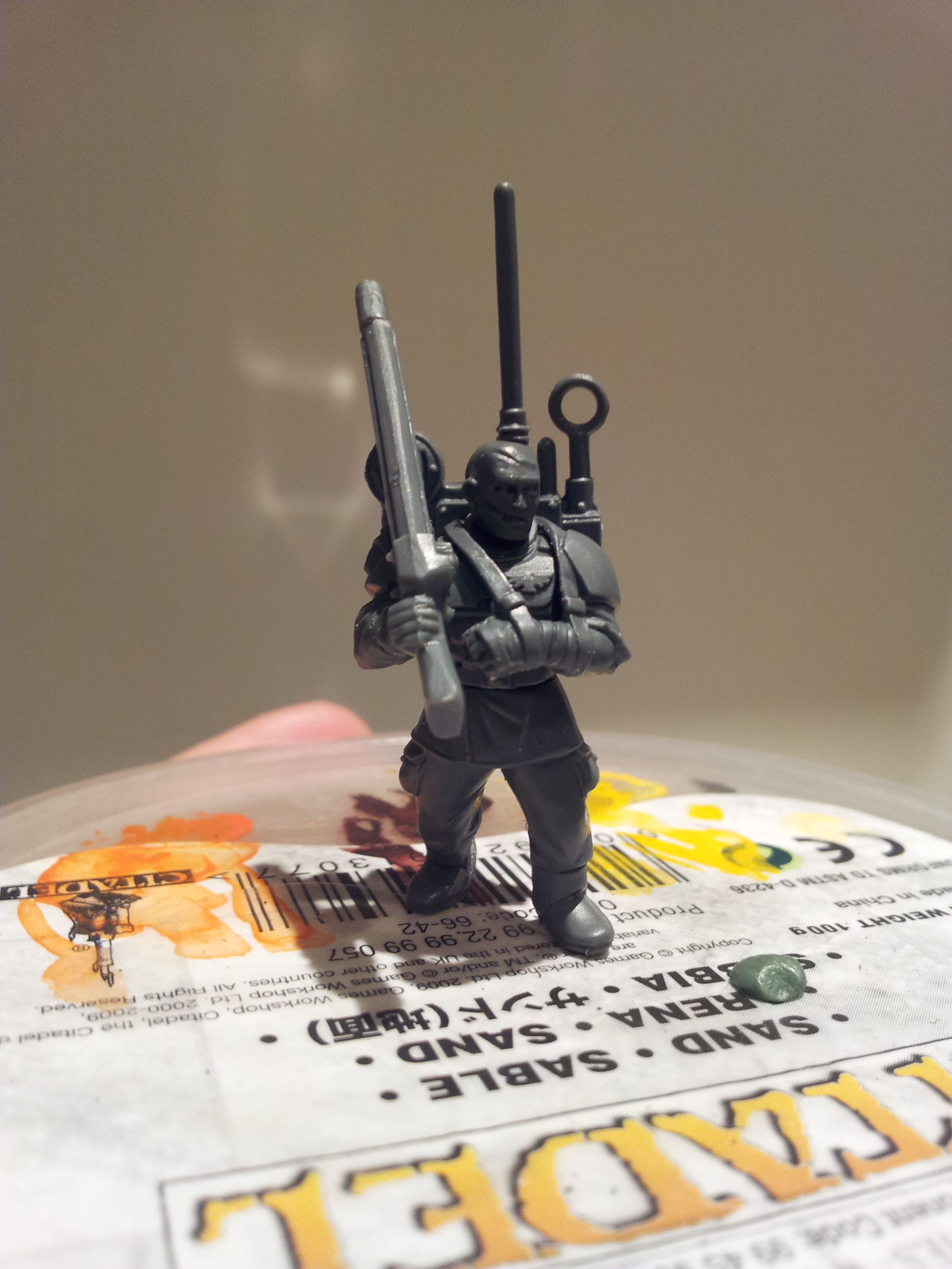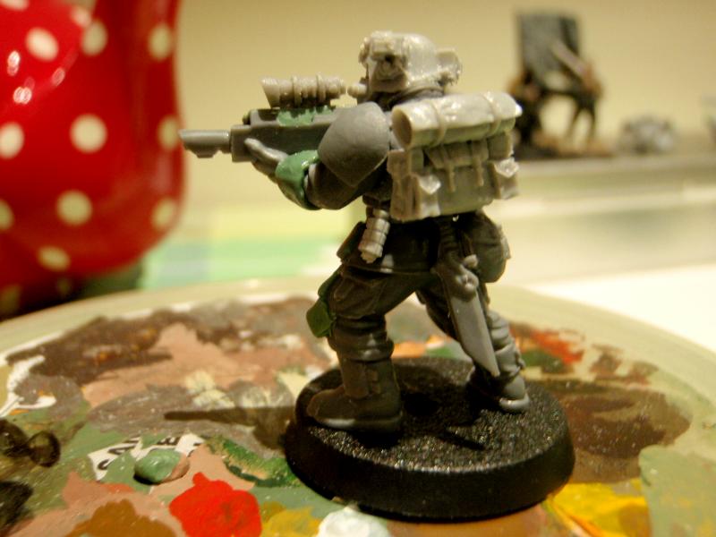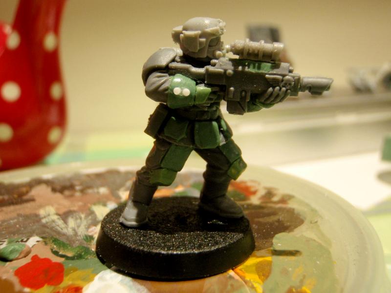 So I was thinking about things this evening, picked up my knife and plastic Cadians and came up with this dude- the first of my Veterans, huzzah! (Apologies for the wanky pictures, but my phone is all I had at the time!).