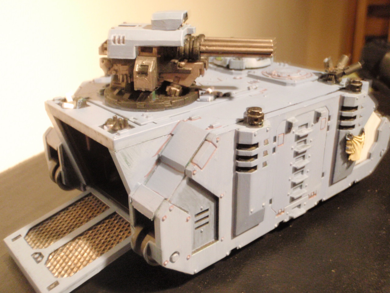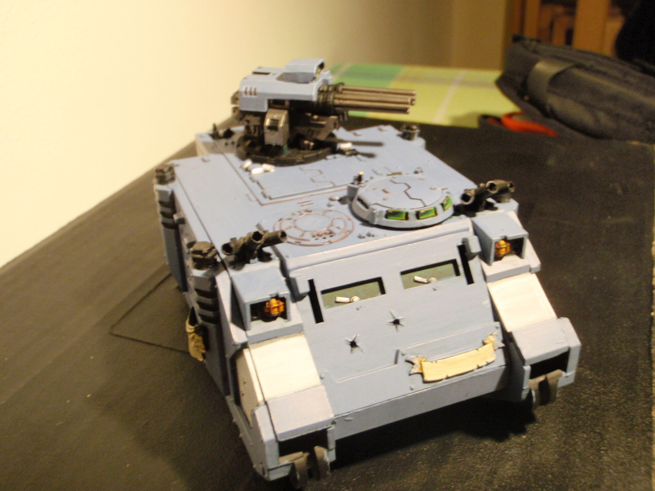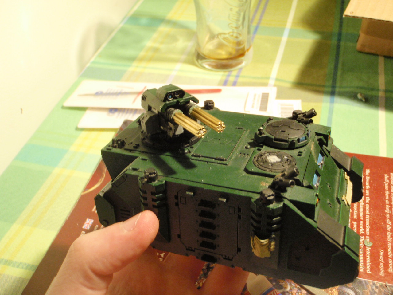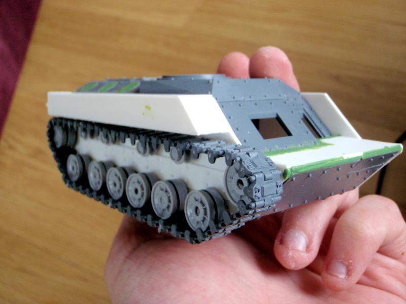 Ok, update time. Not a massive one but I applied some paint to the Razorback today- Need to buy a new set of tracks and visor-thing since the old ones went walkabout.