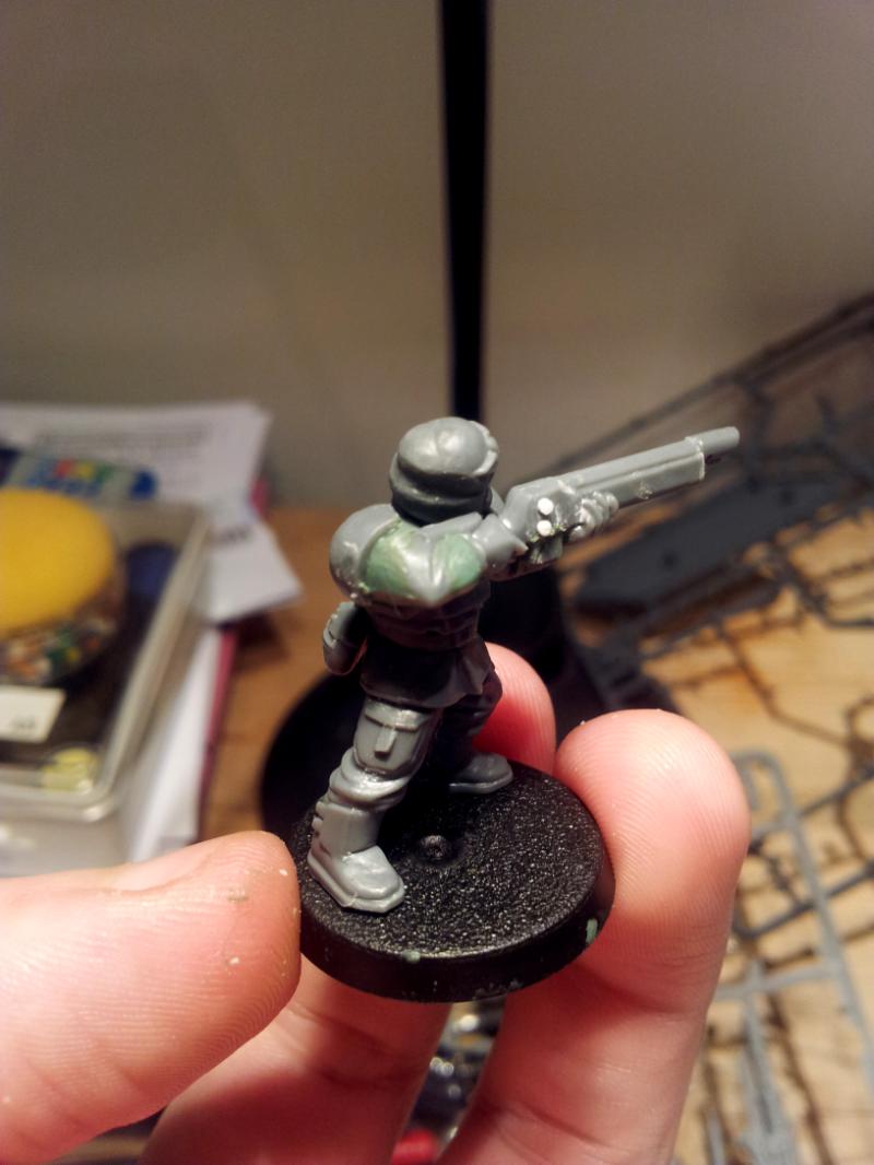 Problem is I've already used the parts- green stuffed the drawing hand on the torso and cleaned up all the bits. Have almost finished the meltagunner and a reloading trooper.