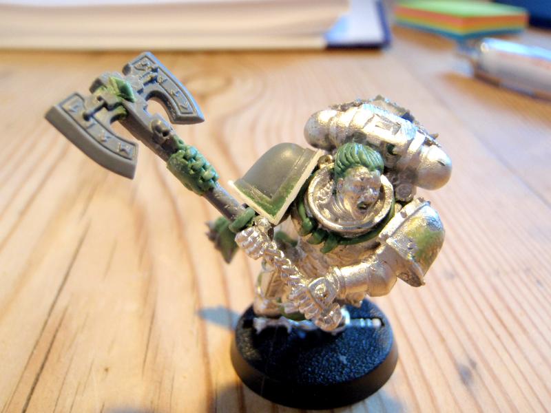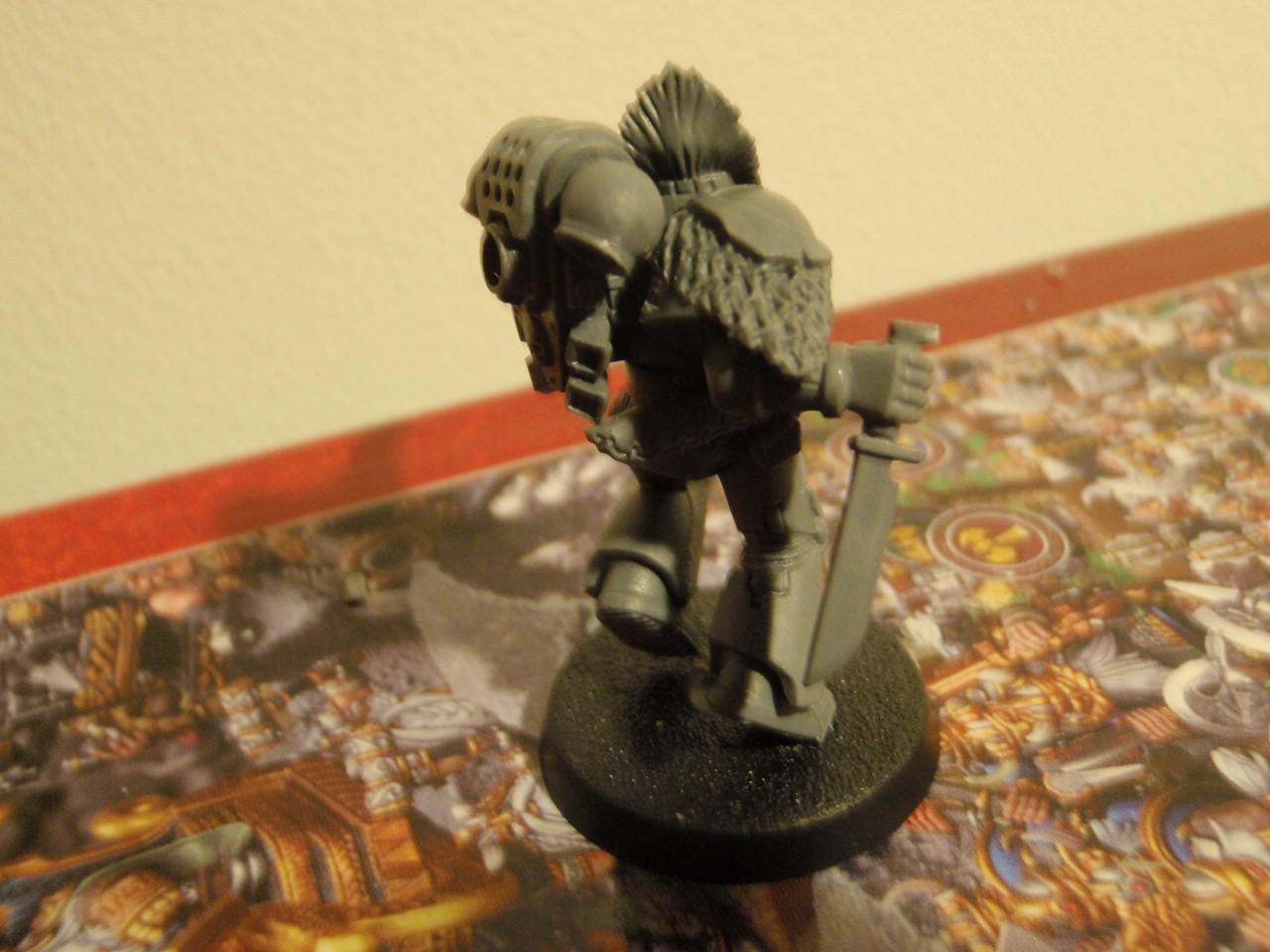 Anyway, getting a squad of Grey Hunters built using mainly the Assault Marine running legs to give the impression of pursuing their quarry through some Emperor-forsaken hinterland (none of this noncing about standing still nonsense!).