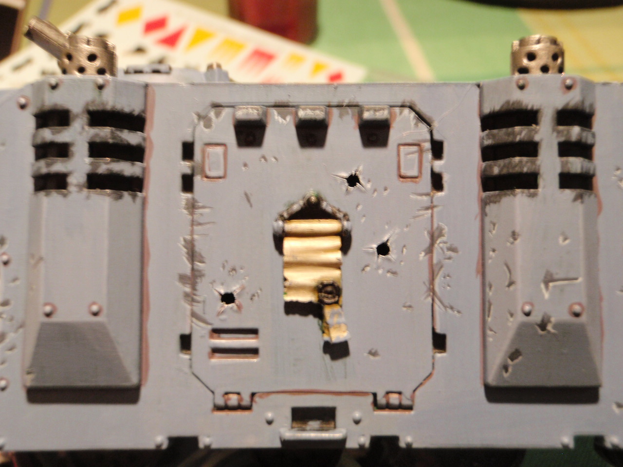 Just a quick update to show that I haven't been completely idle- been doing a bit more to the Razorback, mainly battle damage and free-handing the company markings on: