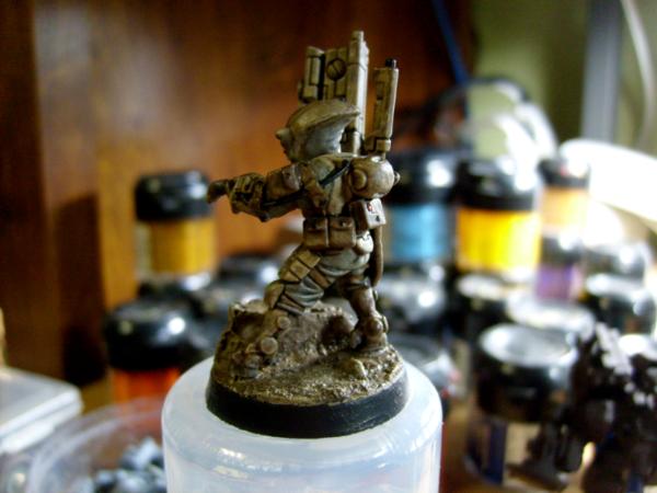 Now a plus to base coating over the paint that is already there I have done it before with my urban Tau using the Krylon Camo paints. They lay a good coat over thick paint like that and if I want to strip the paint the Krylon bonds with the undercoat. This will make it so much easier to strip as the camo basecoat and the paint below become bonded chemically thus pretty much once layer of paint. I know Simple Green works on the Krylon so if the basecoat doesn't look good it will be much easier to strip.