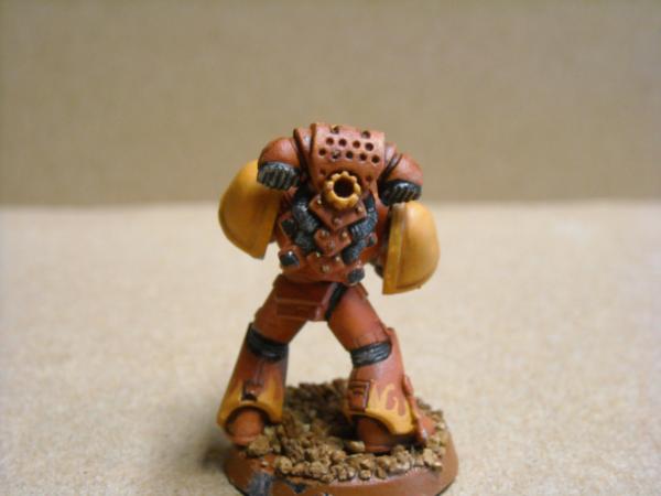 I see your point about the yellow armor, though there are other yellow chapters out here, too (Lamenters). But I agree that the ted would be good, especially if it was darker. I think jt needs to be "warmer" too. This scheme was based on the Flesh Tearer scheme (so, prime black, Mephiston Red, Wazdakka Red, Evil Sunz Red highlight). I was thinking of starting out with a darker red (Khorne Red) and then going up a shade or two. I also used Badab Black to wash; I might try Carrburg Crimson next time.