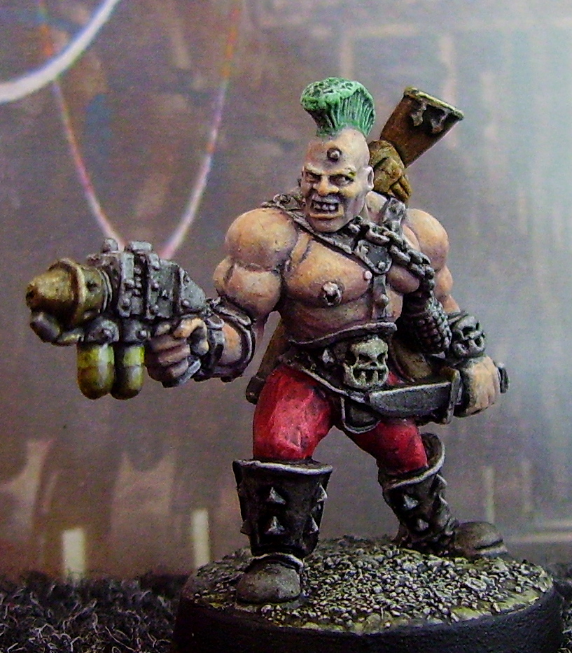 Well competition or no, life goes on and its nice to paint without the pressure. Here's more goliath porn. Goliaths are the perfect subject for me atm as I'm working on improving my skin tones and goliaths have a lot of skin. I have a goliath leader I want to paint next, the one with the grenade launcher and chainsword - he needs fixing as his chainsaw has snapped off but I think with a little GS all will be well. Also I've primed and based a chaos squat and he is sitting on the table waiting for love (thinking nurgle).