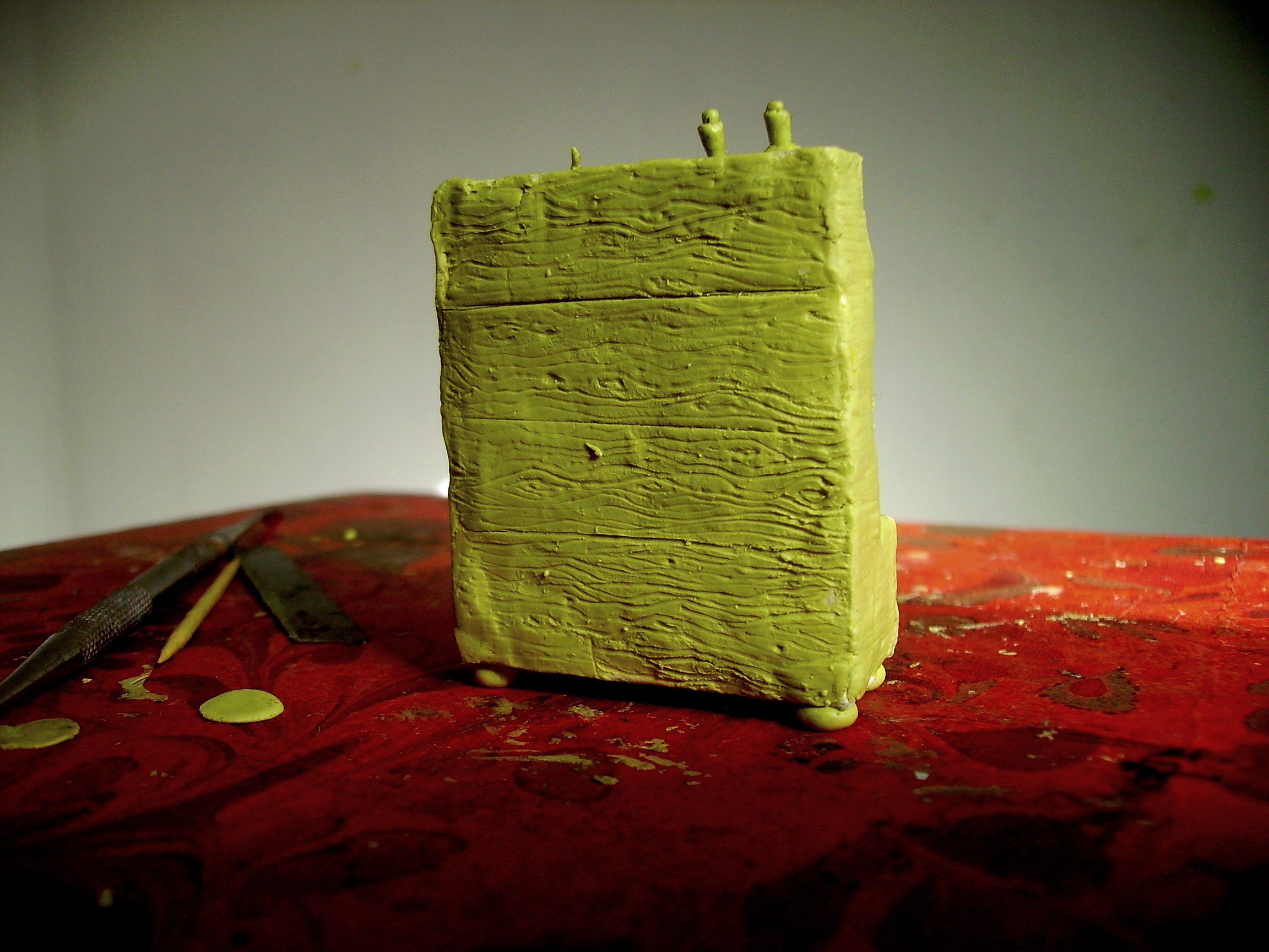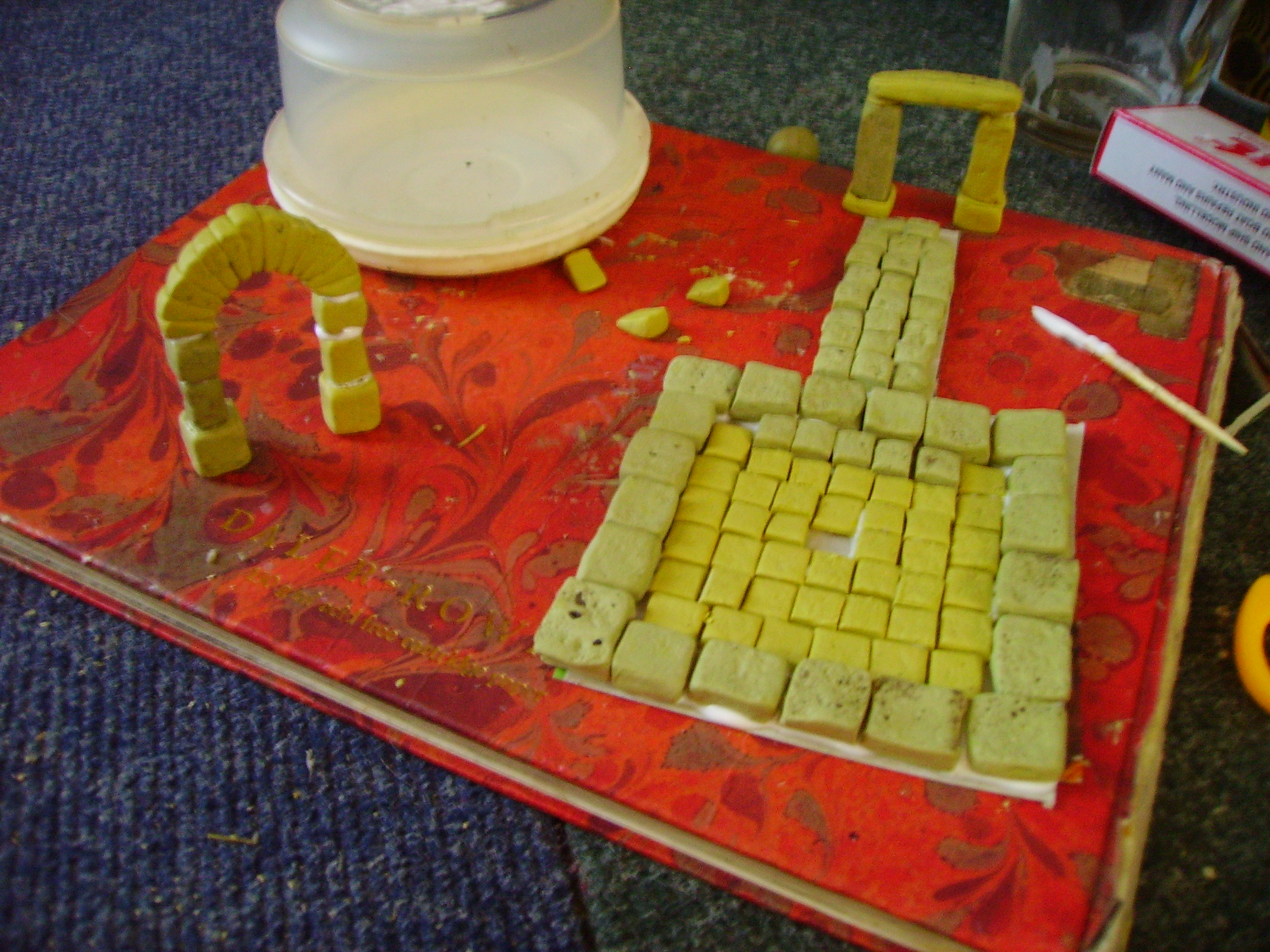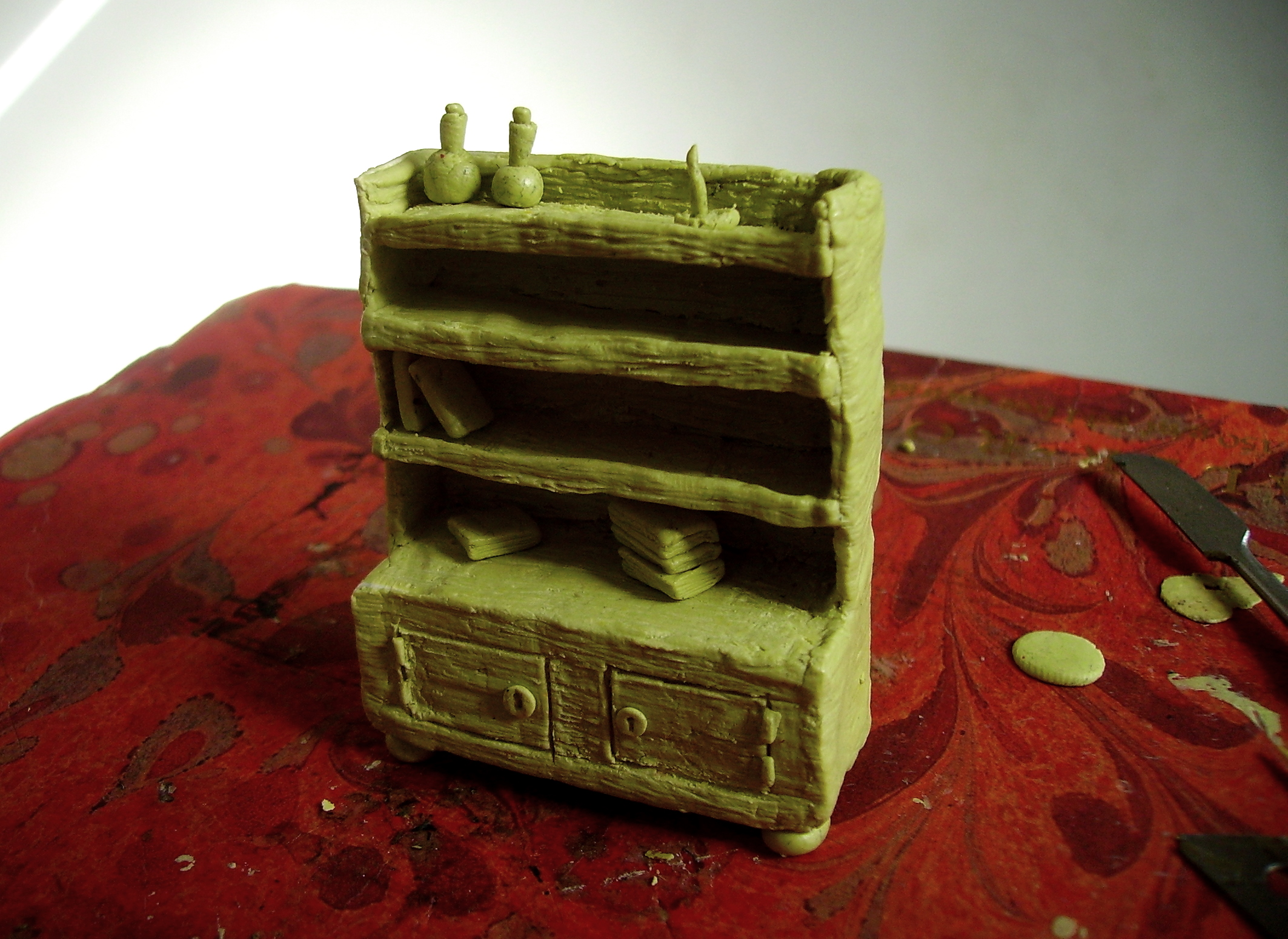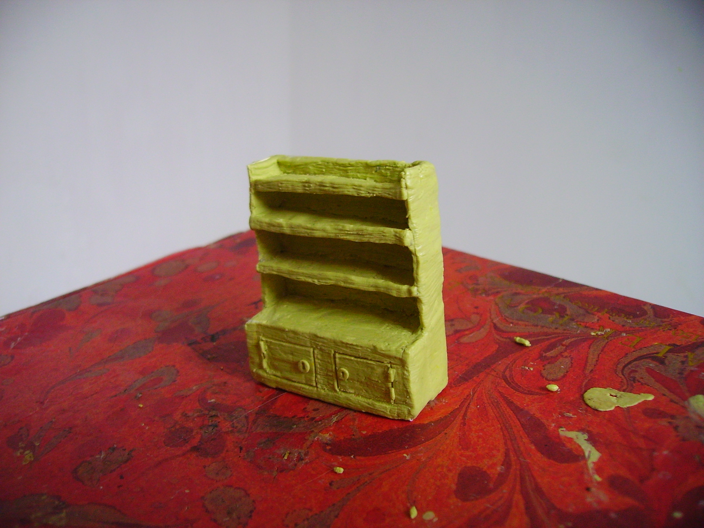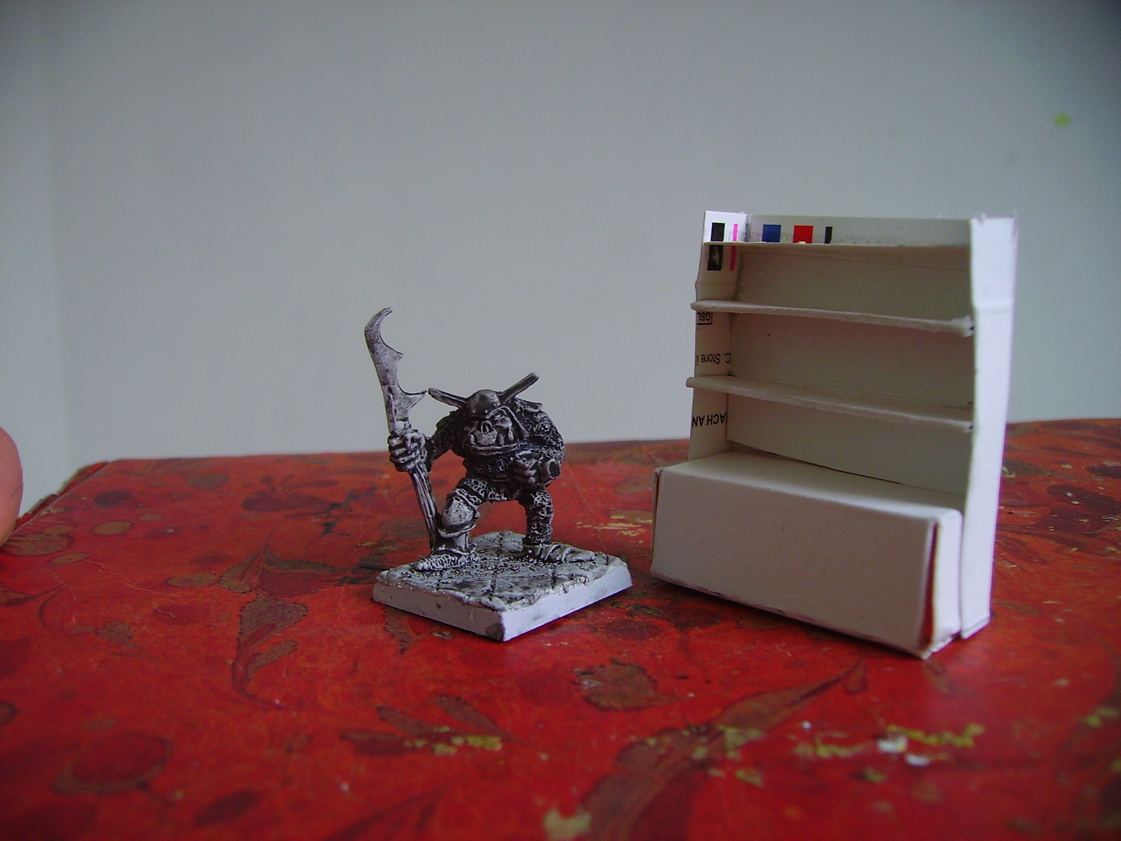 Its been a busy day - in between mountains of housework I have been slathering milliput onto card. I wonder what to make to go on the shelves - books obviously - but maybe some other gak too