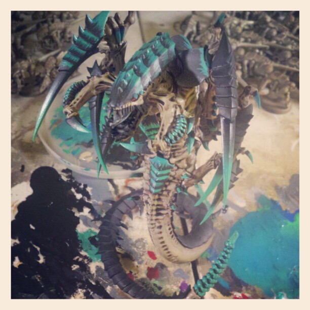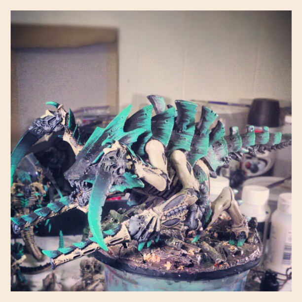Keep an eye out though, because the 'Nids are winding down now that the bulk of the airbrush work is done. The black parts are coming along and I am starting the green-blue steaks on the back. So, pics to follow this week.
