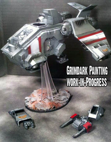 I am working on a Deimos Predator for the Iron Hands - same wonderful client as the rest of the Iron Hands stuff I have been working on. Plus, I got a mediocre shot of the delivered Blood Angel dudes. With my lightbox KO'd, I am going to be hard-pressed to get good shots for a bit. I need a real one, but money is a bit tight at the moment.