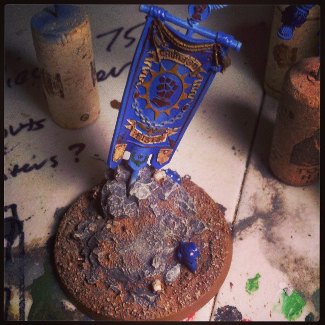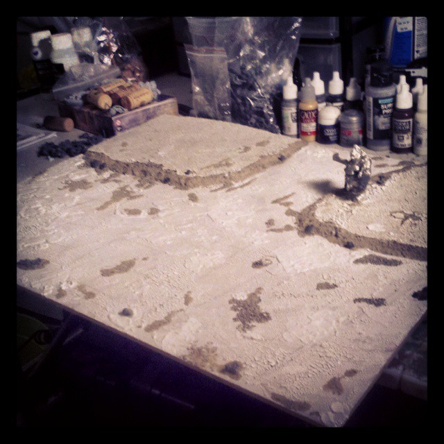 Automatically Appended Next Post: So, I am never satisfied. I went out and grabbed some Liquitex Heavy Gloss Gel and added it to the existing stuff. Allegedly, it dries clear, meaning while this looks neat now, I will need to paint on the breakers after the fact. C'est la vie. It does look a whole lot more convincing now and I got to drag it around to make the Knight's toes have a bit of splashing around them.