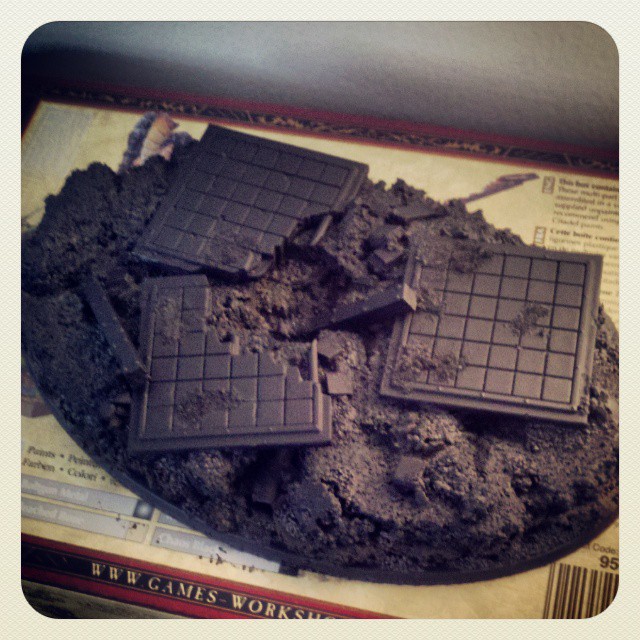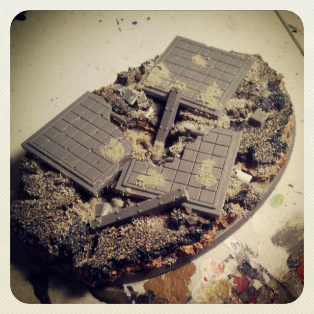 The rest is just standard ballast/sand mix with wood fiddly bits painted up. I am going to add some tufts and paint the rim before I call it finished.