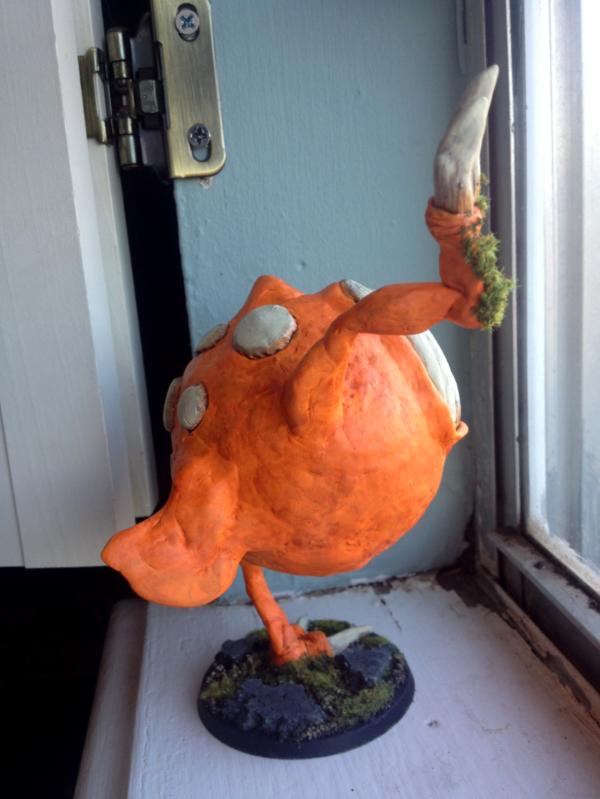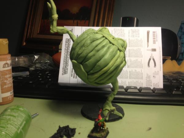 quick and dirty paint job from last night, need to finish base and do some more highlighting. Going to change glow to not hit hands as it looks like crap, and change it from green to blue I think. Possibly red orange. if I do red orange I will make foliage on top green, and if I do blue eyes I'll do orange/red/yellow foliage