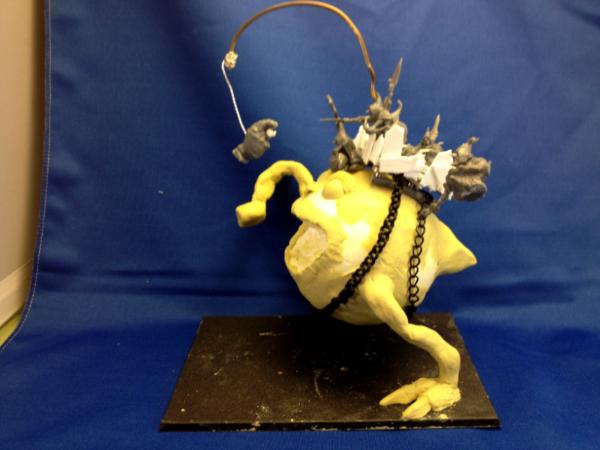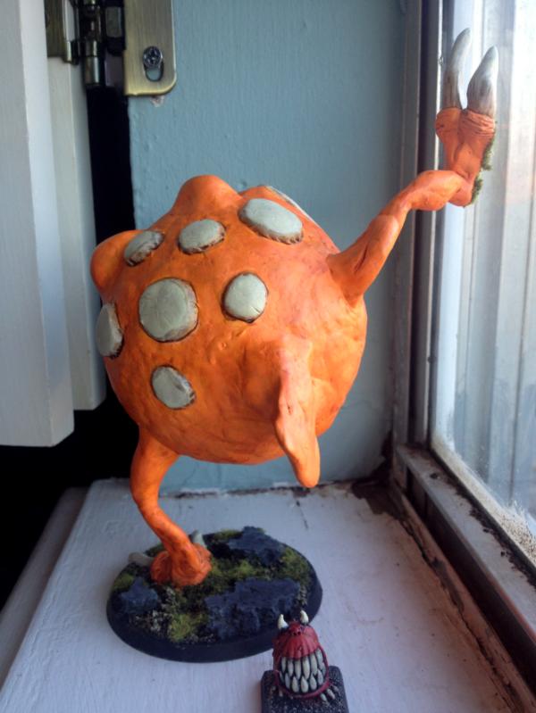 Maybe others won't find it quite as humorous, but I had considered a hamster wheel on the back of one? (with a grot/squig running inside)