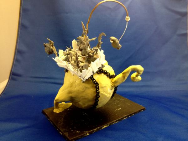Once I sculpted the mouth and it was set up some but elastic enough I could move it around still, I started playing with the mouth positioning I gave him. He looked like Freddy Kruger/scary terry.