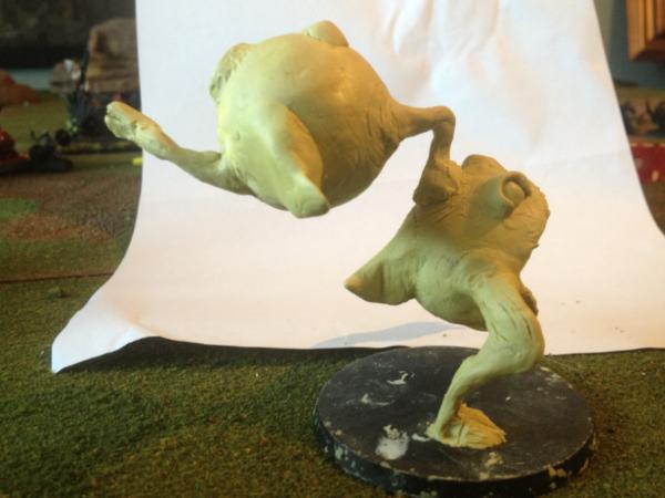 I need to make a second set of arms and legs. Probably a version standing with slightly bent legs, and a squatting about to jump at you pose. I would like to do an arm set of him also reaching out towards the sky, thought about doin a set of arms in which he was potentially flipping the bird like Kev Adams old night goblin as well?