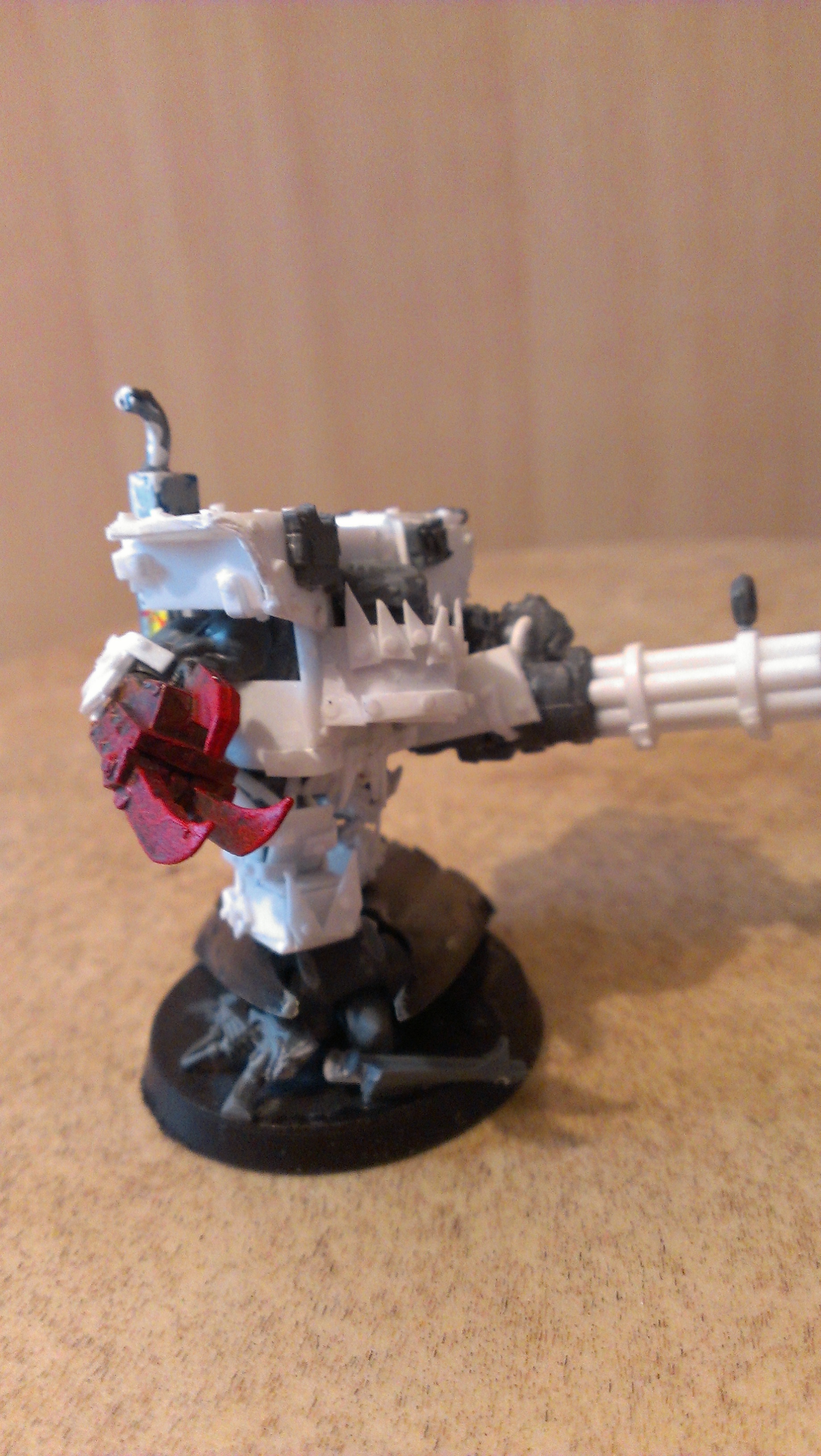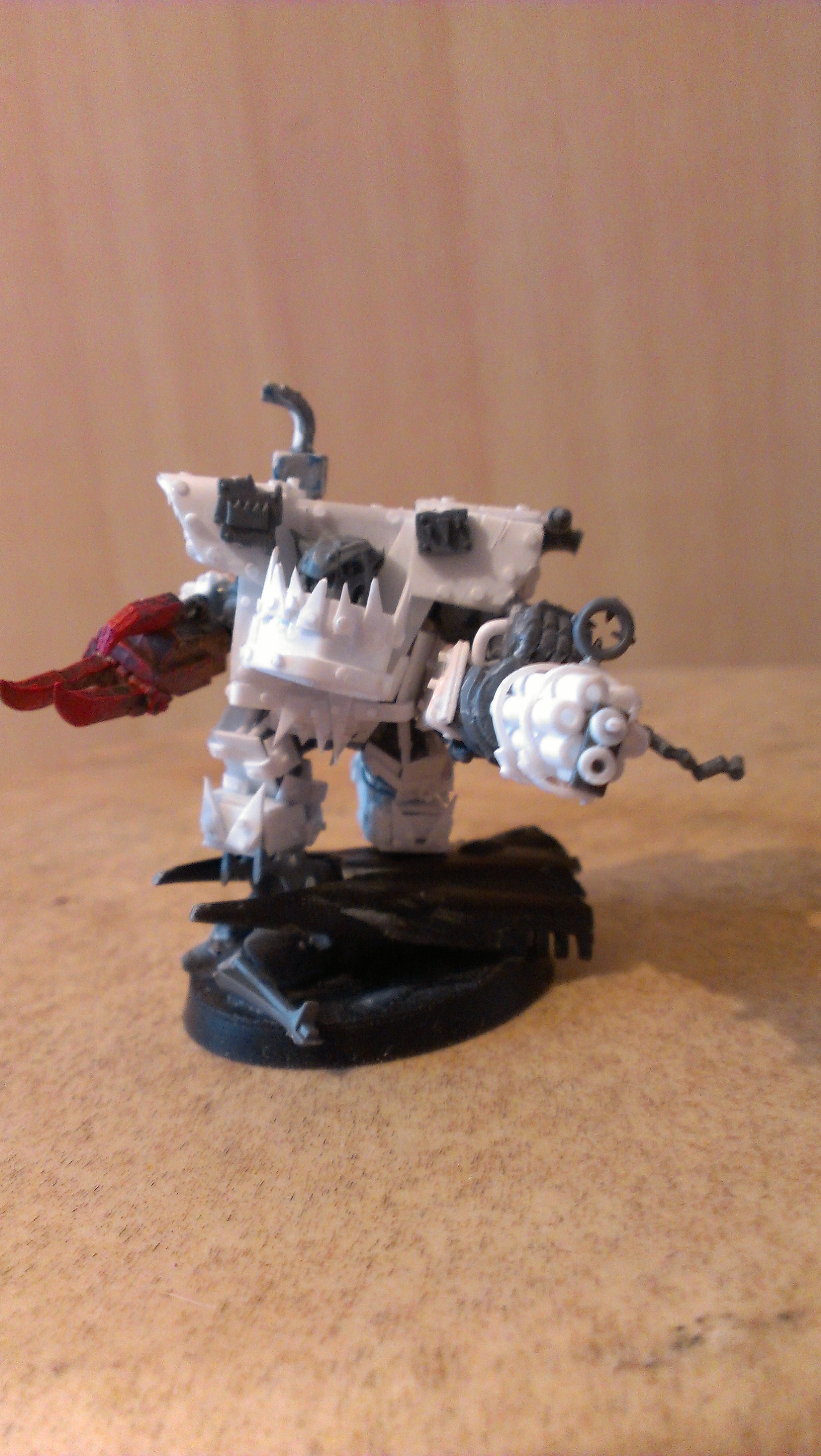 I feel the right arm needs more... i was going to add a plate over the bicep, but maybe that won't be enough. I didn't realize the klaw looked out of place/wonky.. I knew i needed to add some greenstuff straps for it, but that was my only plan relative to it.