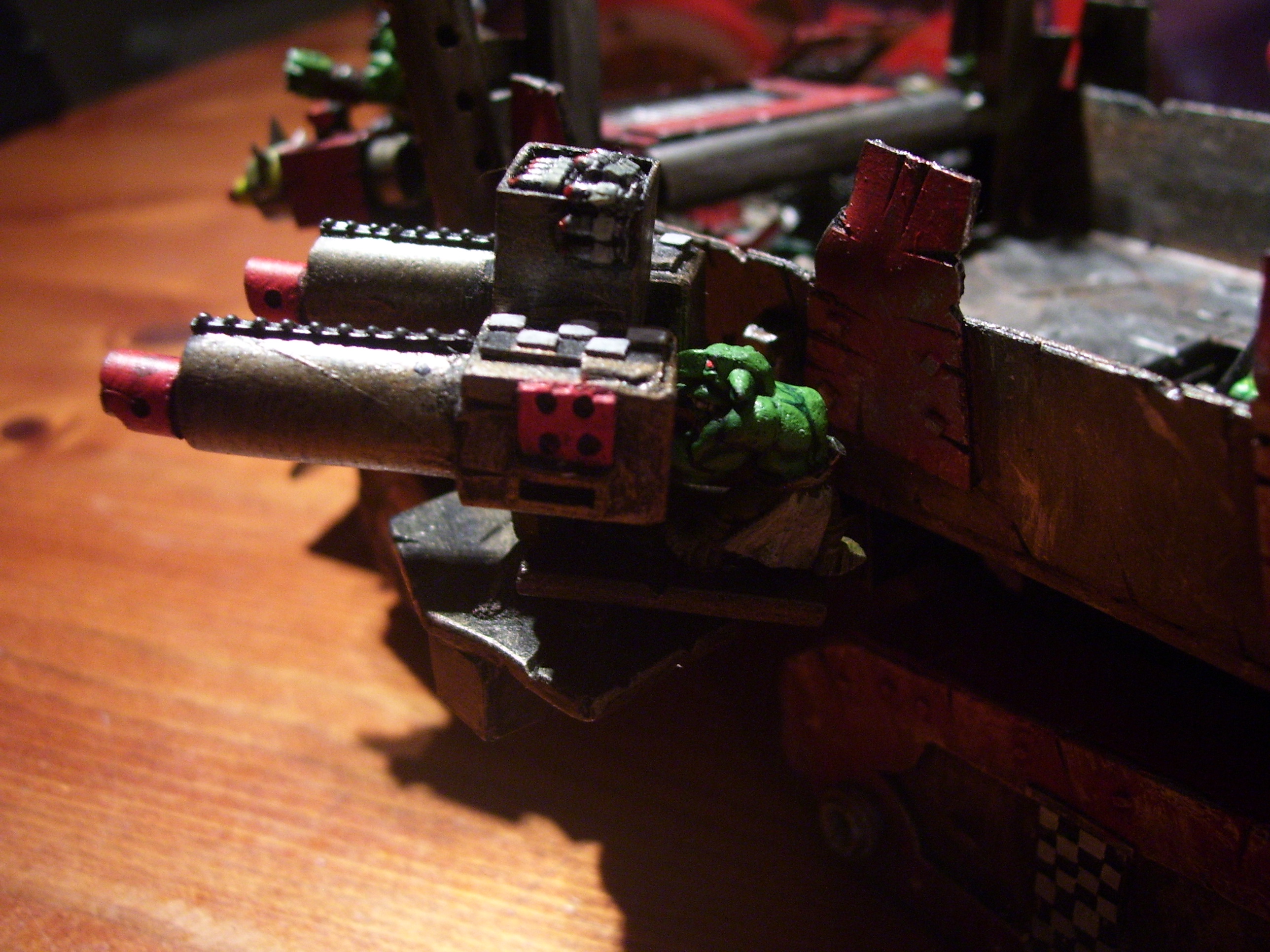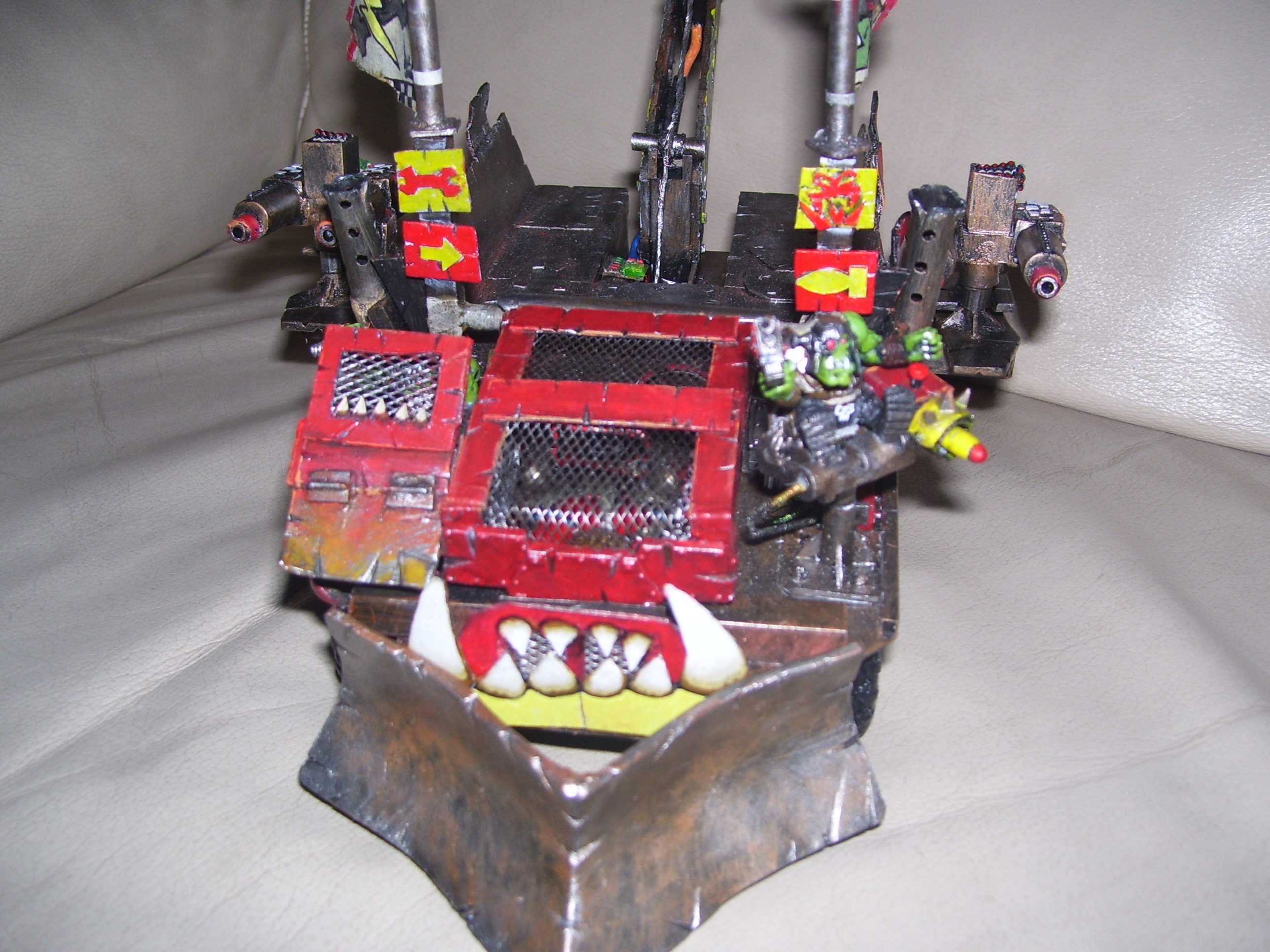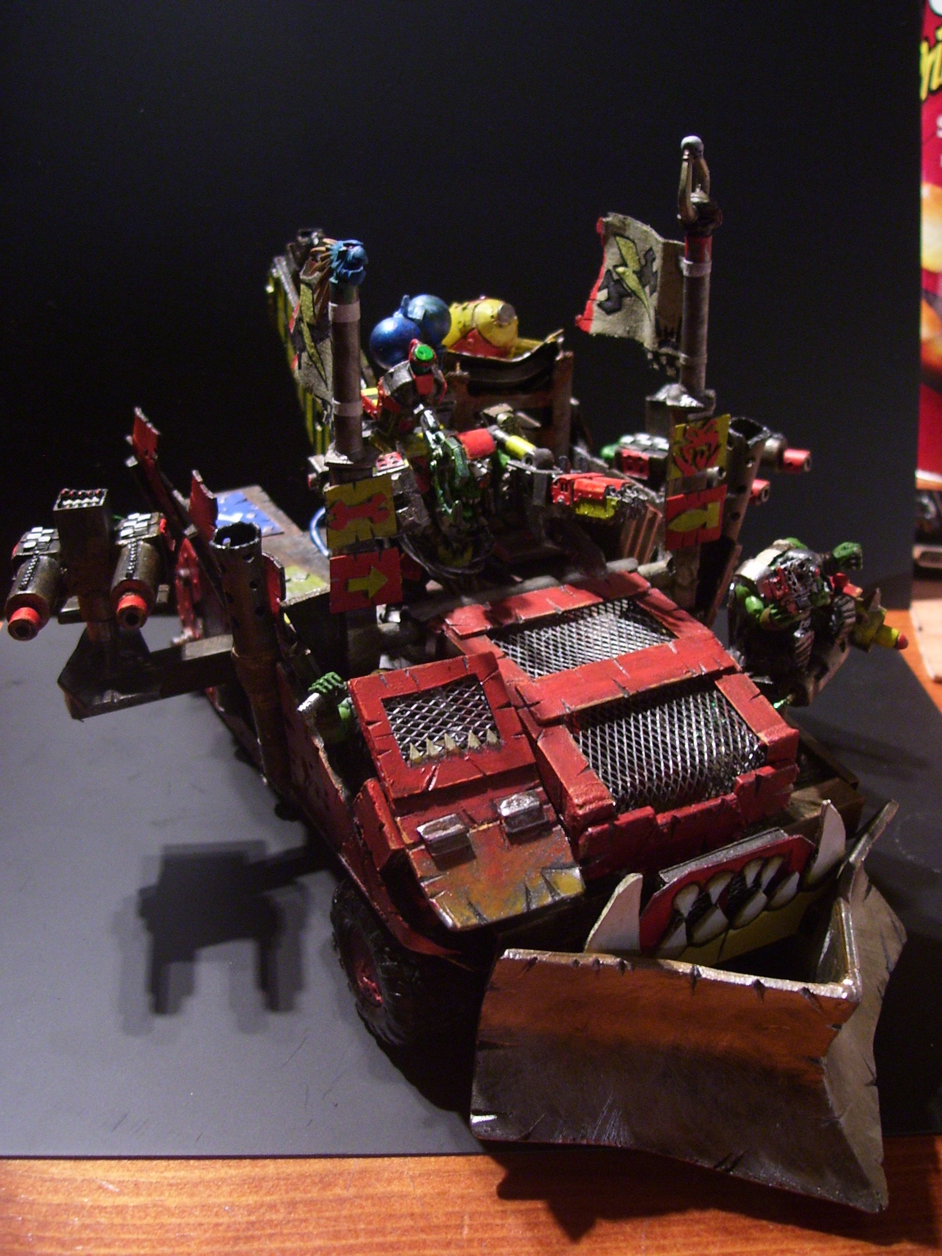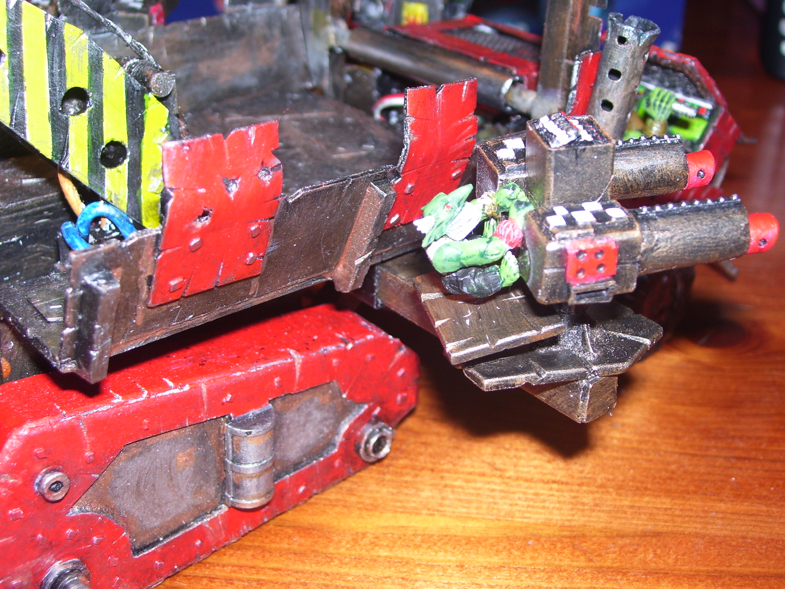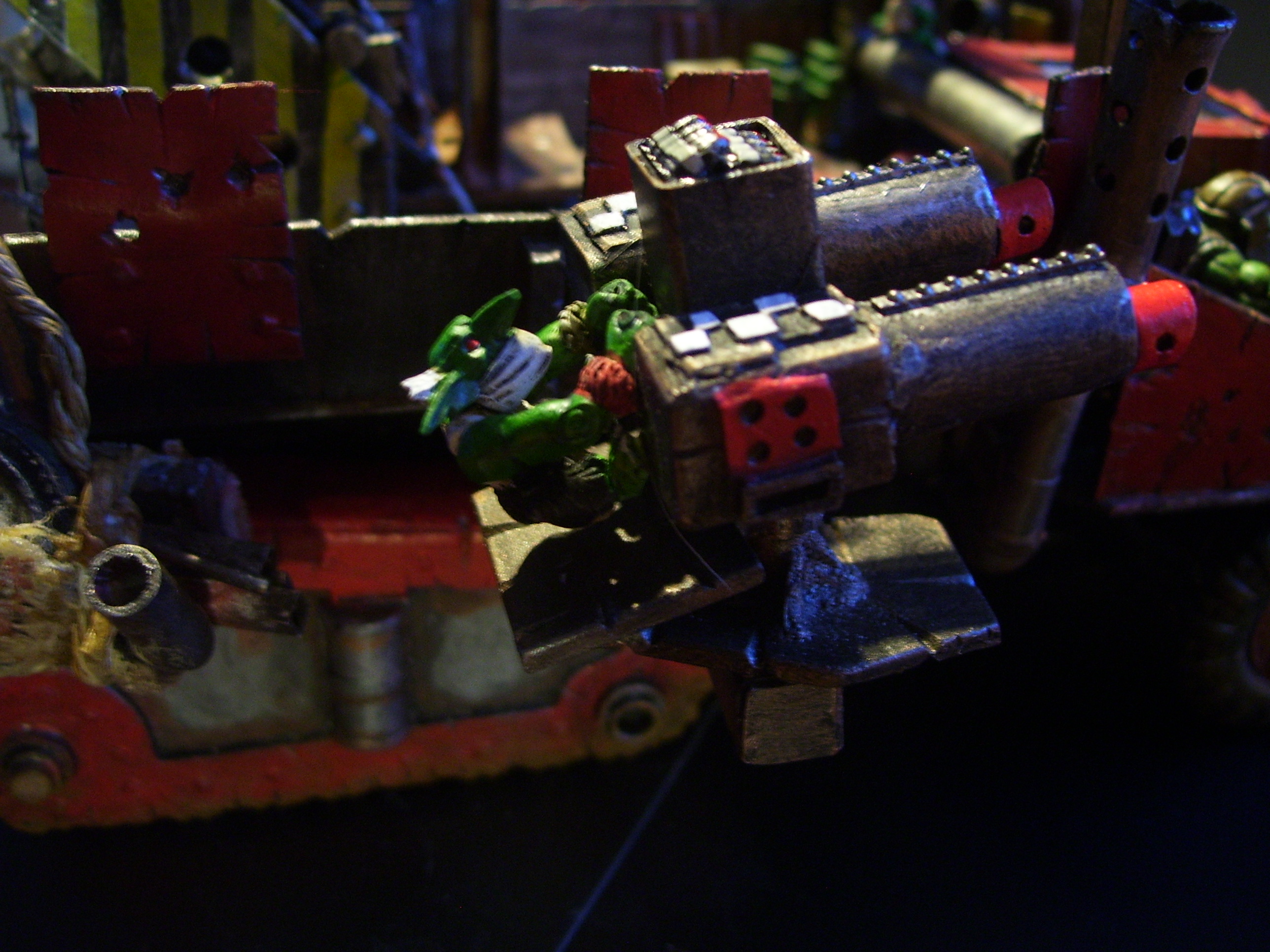 wow, this is becoming more awesome by the day, lik the grots operating the big shooters and the whole removable bit thing. the flags look ace and the front bumper looks pretty sweet too. keep up the good work.