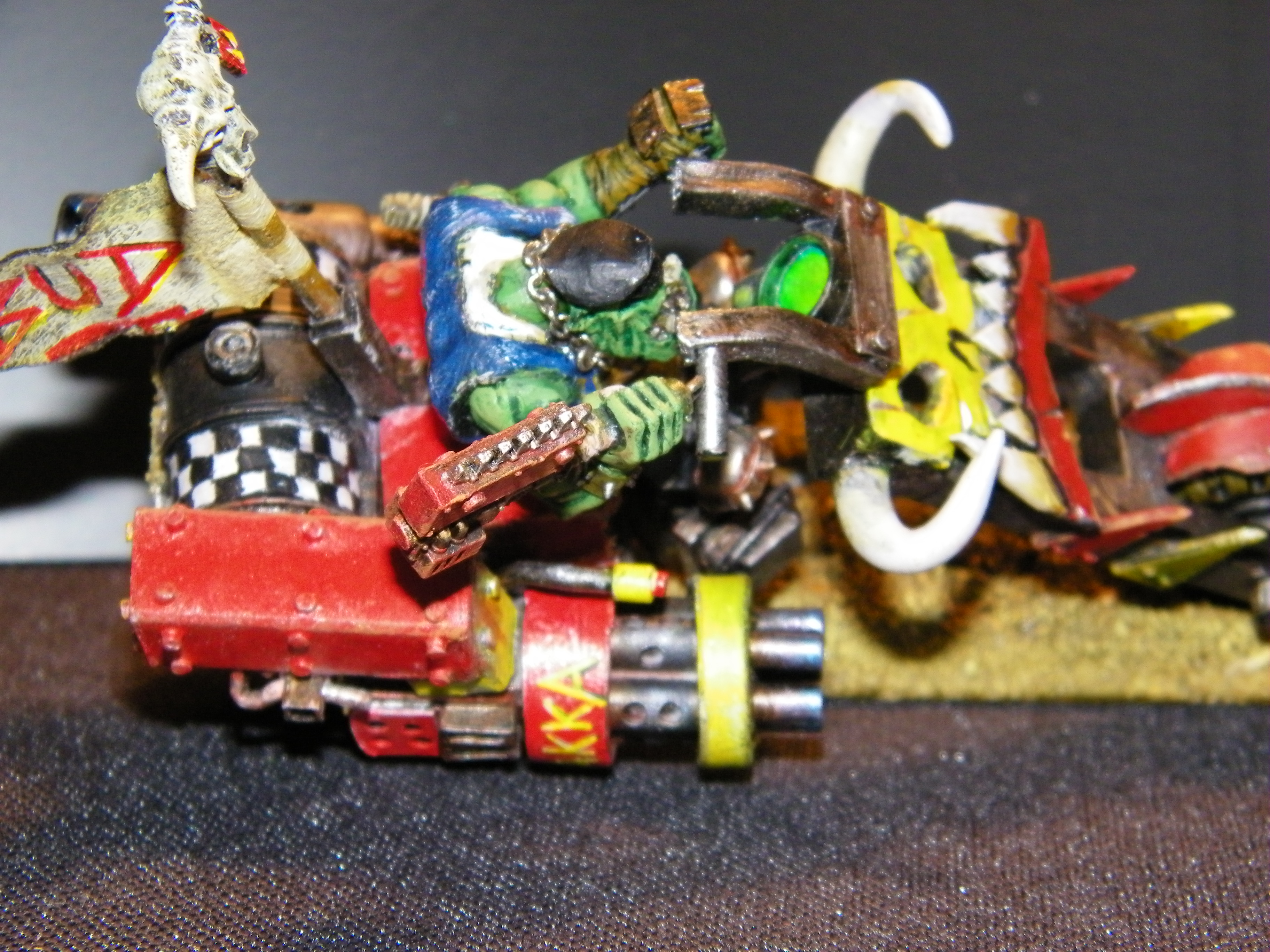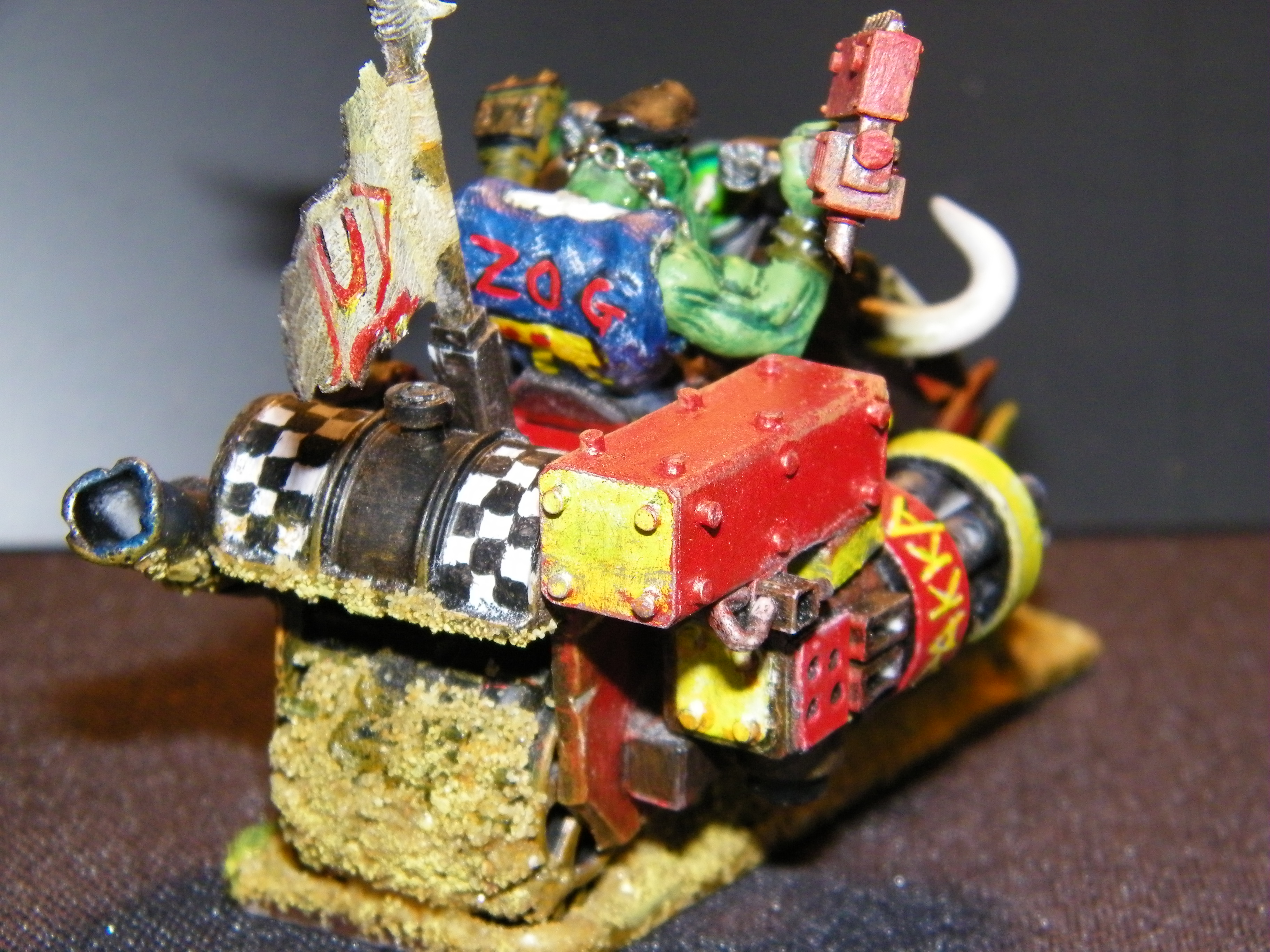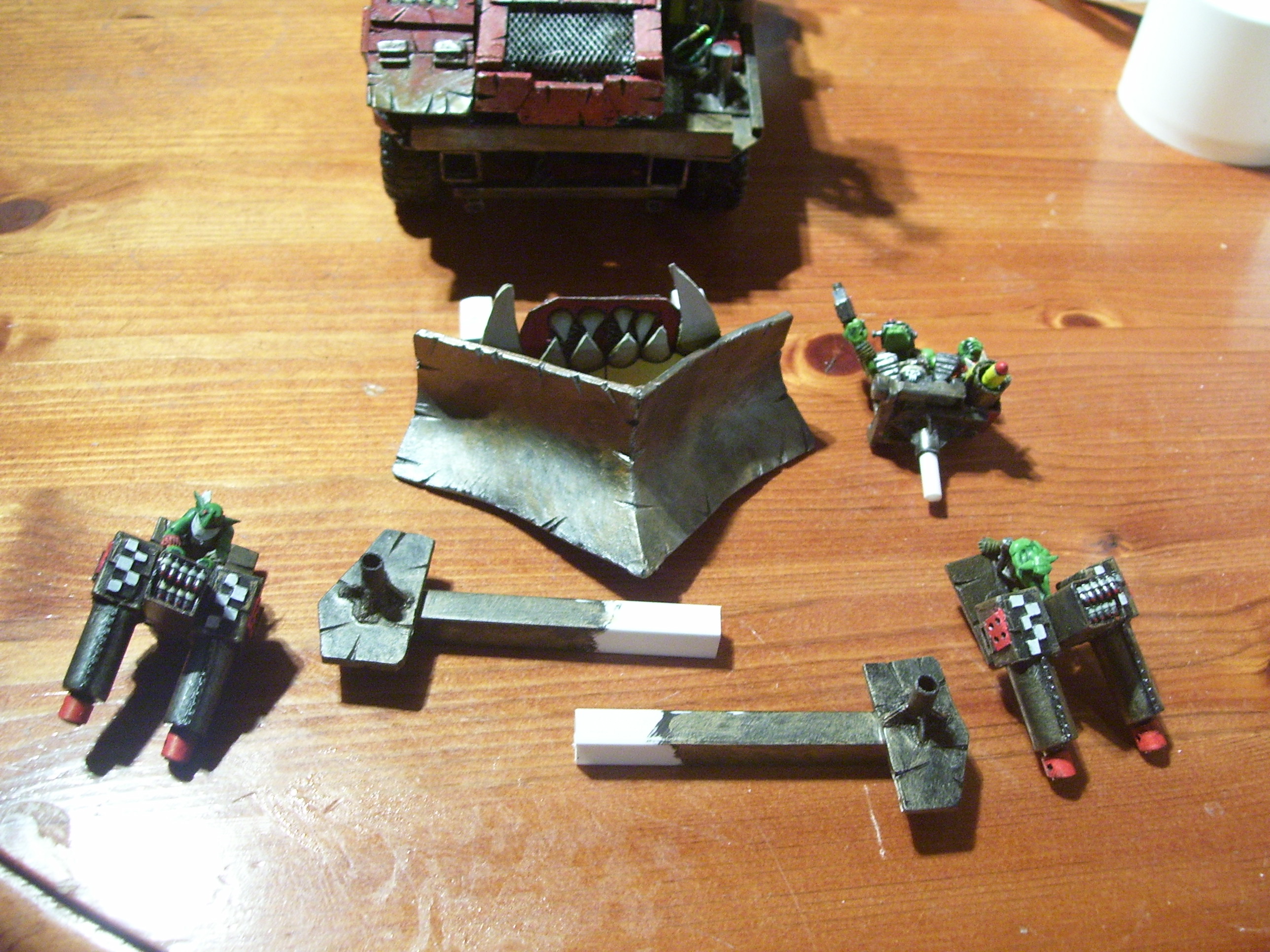 Many years ago I started an Ork army, and have never really given up, this is now many years on and several incarnations later. The one thing you will not find here is anything close to a cohesive army. I believe the "Rules" are wrong on that. In my universe 2 armies are never equal when they meet, in my universe the Ork Horde is made of many different factions all under one WAAAAGH! I am primarily a modeller and have not played in years really, but I do kind of lean toward the various codex archetypes, so you will find bands of boys and bike squads, and eventually Dakka Jets, but you will also find many things which are very unique, and would struggle to be "counts as". My Orks make things to work, not to conform to some specific size/shape/design/colour. And my Orks can't put a rivet (I really love rivets!) but they can't put Rivets in a straight line if there life depended on it.